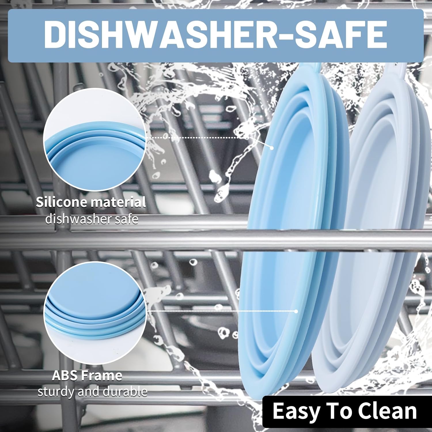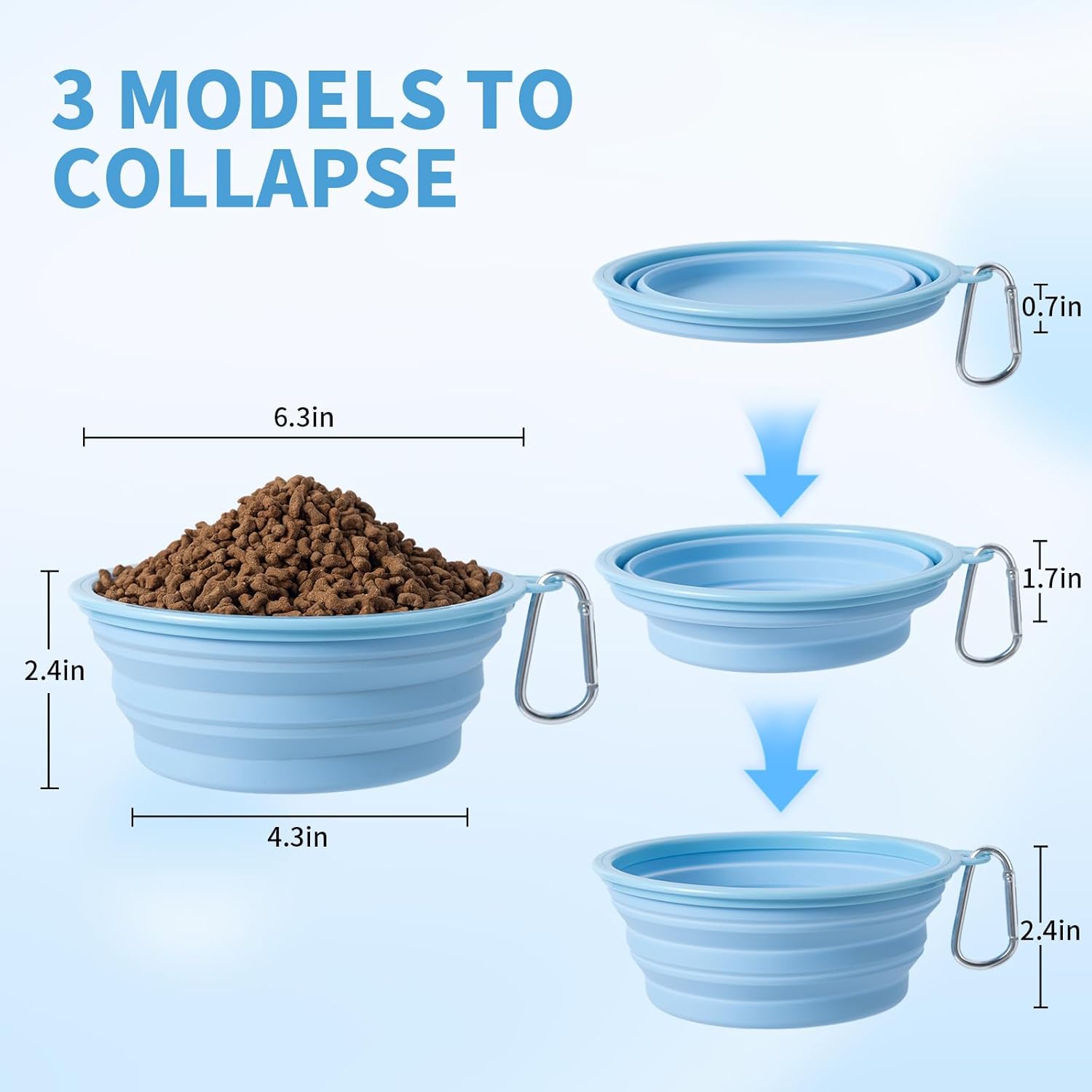About this item SILICONE DOG BOWLS: made of high quality silicone material,these collapsible dog bowls are safer than plastic bowls, more healthy to your pets and easy to clean. Dishwasher safe! Perfect dog travel water bowls for adventures, road trips, hiking, camping, or any outdoor activity with your four-legged companion. THE STRONGEST RIMS THAN EVER: SLSON collapsible dog bowl series brings a new model this time, abandonned traditional assembled rims which are easy to fall apart or break. Choosed a completely new unique process, makes a sturdy structure between the rim and bowl. The rim will never break down. These pet travel bowls are stronger than ever. FASHIONABLE MACARON COLORS: dog foldable bowls specially designed with macaron colors, soft and elegant. And the color of the bowl and rim is consistent, provide a more coordinated appearance than other collapsible bowls. Fashionable and attractive. Say goodbye to the dull black rim! PORTABLE & LIGHTWEIGHT TRAVEL BOWLS: The collapsible design makes these bowls incredibly space-efficient - they fold flat for easy storage in your bag, car, or pocket. When needed, they quickly pop open to provide a sturdy vessel for food or water.The portable design makes it simple to offer your dog fresh water or a meal wherever your journey takes you. An essential accessories for pet parents on the move. 3 SIZE TO CHOOSE: Available in 3 different size S,M,L for small,medium,large breed dogs/cats. S: 5''x3.5''x2.1''(expanded), 0.5'' height(folded), each bowl holds 12 oz of water or 1.5 cups of pet food. M: 6.3''x4.3''x2.4''(expanded), 0.7'' height(folded),holds 22oz water or 2.8cups food. L: 6.8'' x 4.9'' x 2.9'' (expanded), 0.7'' height(folded), holds 34oz water or 4.2 cups food. Keep your furry friend hydrated and well-fed on the go with SLSON Collapsible Dog Travel Bowls. › See more product details