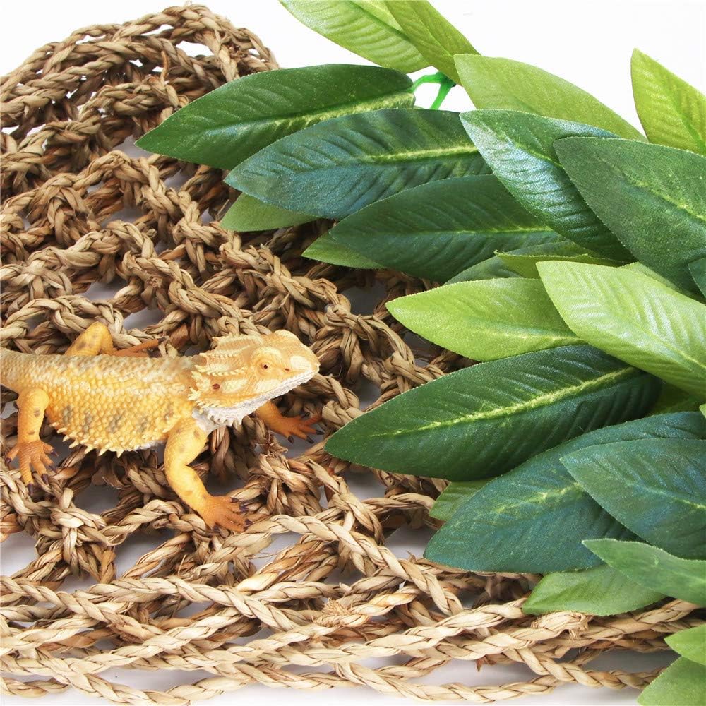 As artificial plants do not require nearly as much maintenance, they are far easier to take care of.Our artificial terrarium plant has the same decorative and functional benefits as live plants. However unlike living plants, they do not need light, food or even water to thrive and survive so they are ideal for reptiles,snake,bearded dragon,frogs, toads, salamanders and newts decorations.Specifictions:1.Color: green2.Material: high quality plasitc + silk3.Dimension:12 inch long4.Package included: 1x reptile decoration plant with suction cupFist use suggestion:Please rinse and soak the plastic reptile plants in warm water for 15-30 minutes, to relax the fabric and give them an even more realistic look.Then place it into the terrarium, use the suction cup to fix it onto the tank glass.Washing tips:Simply rinse under warm tap water; a more in-depth disinfecting can be done with bleach.Please Note:Keep away from your heat lamp,never install the plastic plant under the heater !!! Please feel free to contact us if you have any questions.Thank you!