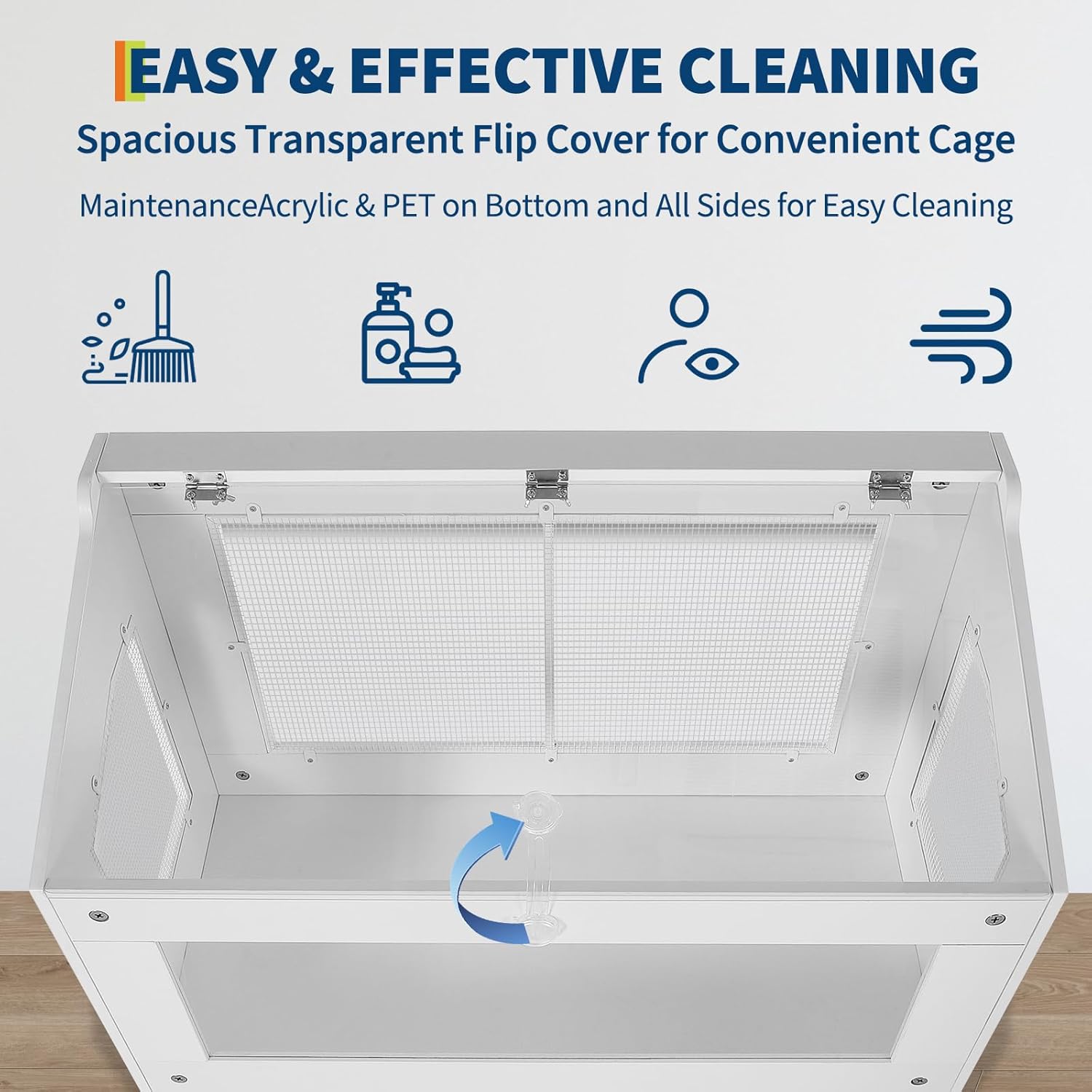 Create an organized and engaging home for your small pet with this versatile habitat. Measuring over 42 inches high, the enclosure provides ample room for hamsters, guinea pigs, or hedgehogs to explore, play, and rest. The clear acrylic front and metal mesh design offer excellent visibility and continuous fresh air. The included storage cabinet keeps all your pet care supplies—like food, bedding, and toys—neatly stored and within reach. The design simplifies daily care with easy-access doors and a removable tray for quick cleaning. The durable wood and metal construction ensures lasting use, while the thoughtful layout helps you maintain a tidy space. A great choice for pet owners looking for a functional and attractive enclosure