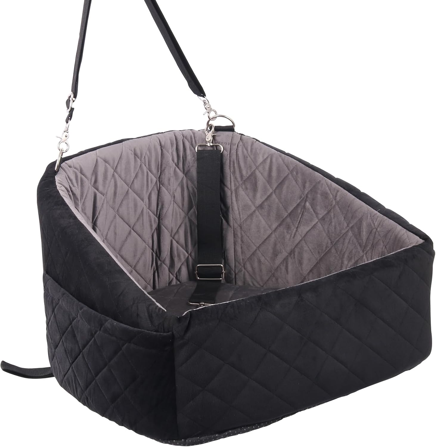About this item 【Secure & Stable Design】:Easily install this dog car seat using your vehicle’s seat belt or headrest straps to prevent shifting. The included safety leash attaches to your pet’s harness for added security, keeping your pup safe while driving. 【Perfect Fit for Small Pets】:Measuring 19.7" L x 19.4" W x 12.5" H, this booster seat is ideal for small to medium dogs and cats up to 30 lbs. Fits most cars, trucks, and SUVs—install it in the front or back seat with ease. 【Plush Comfort for Every Ride 】:Features ultra-soft short plush fabric and high-density sponge padding to absorb road bumps, ensuring a cozy and relaxing ride for your furry friend. 【Versatile & Convenient】:Side storage pockets hold toys and essentials, saving space. Remove the seat belt to transform it into a portable pet bed—perfect for home, travel, or camping. 【Easy to Clean & Maintain 】:The removable, machine-washable mat and zippered design make cleanup a breeze. Just unzip the base, remove the sponge, and toss the fabric in the washing machine. › See more product details