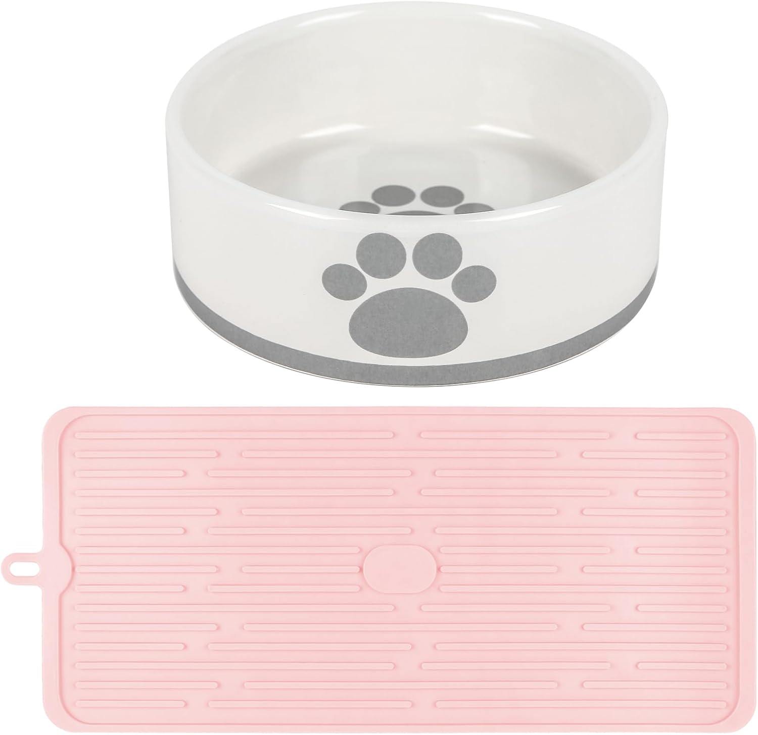 The Complete Clean Feeding Set: Non-Slip Waterproof Placemat + Easy-Clean Ceramic Dog Bowl Combo | Splash-Proof & Leak-Contained, Dishwasher Safe