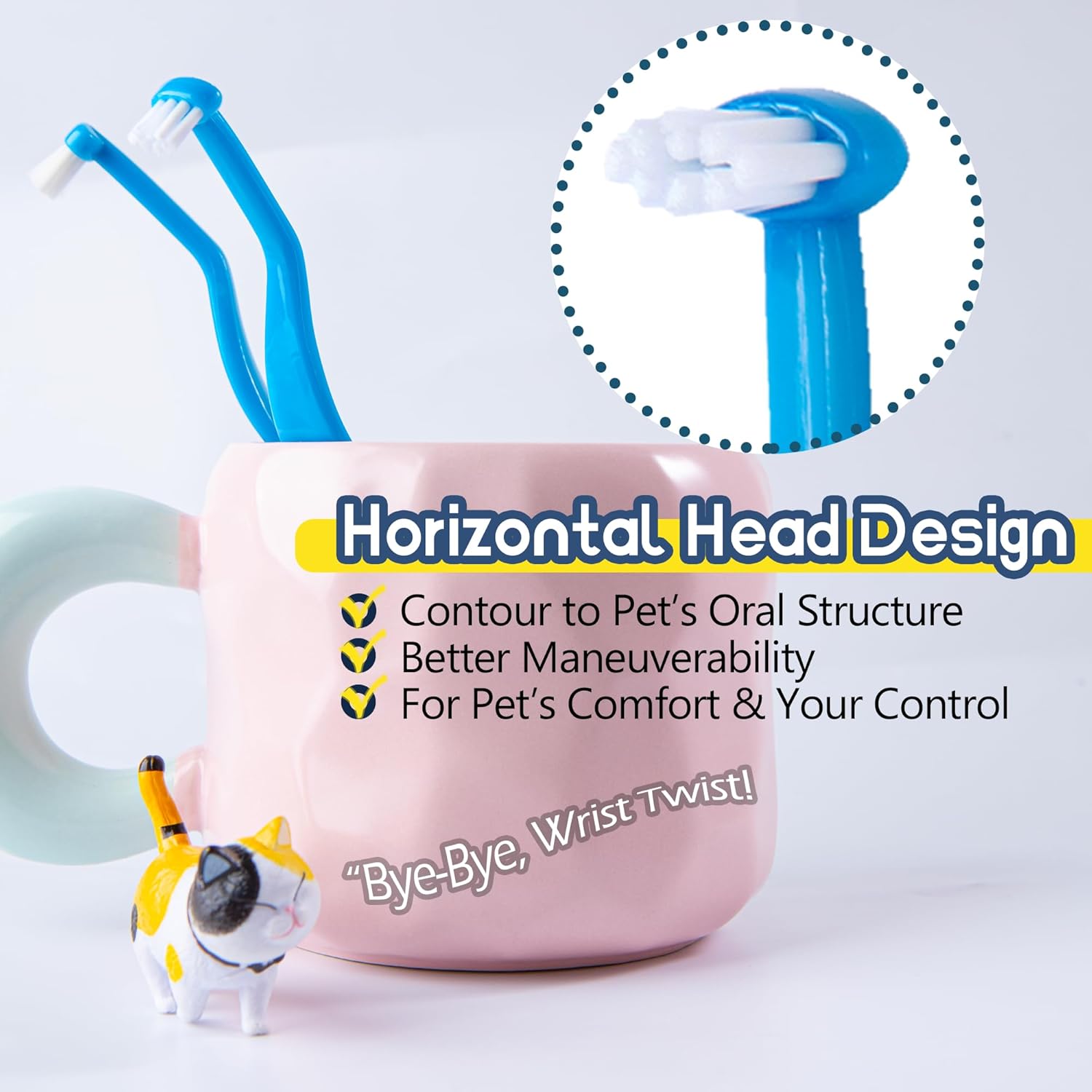 About this item What You Get - This small dog & cat toothbrush kit includes 2 brushes with medium firm bristles. This design makes it easier for you to clean your pet's teeth, reaching every angle, whether it's the front or the sides Micro Head for Cats & Small Dogs - No more struggling with bulky tools or worrying about missing those hard-to-reach spots, the micro brush head is suitable for most cats and small dogs like chihuahua, yorkshire, bulldog and more, it glides effortlessly between teeth, tackling plaque and tartar with ease. Your pet will love the gentle touch! Super Effective Teeth Cleaning Kit - the horizontal brush head is crafted from 0.12mm nylon bristles, perfect for pets who are seeking for toothbrushes with better cleaning power, it delivers a swift yet thorough clean, making oral care a breeze Crafted with Love, Built for Durability - At our core, we're passionate about pampering your pets with the finest of everything. The handle of our doggie and cat toothbrushes are made from premium plastic that is ergonomically designed for a fuss-free hold. Its bristles are steadfast soldiers, steadfastly refusing to shed Designed for Pets - Our puppy and cat tooth brush kit is tailor-made for feline and tiny doggie grins! It promises a spa-like routine. Pick us, and your pet's pearly whites will thank you with a wagging tail and a purrfect smile! › See more product details