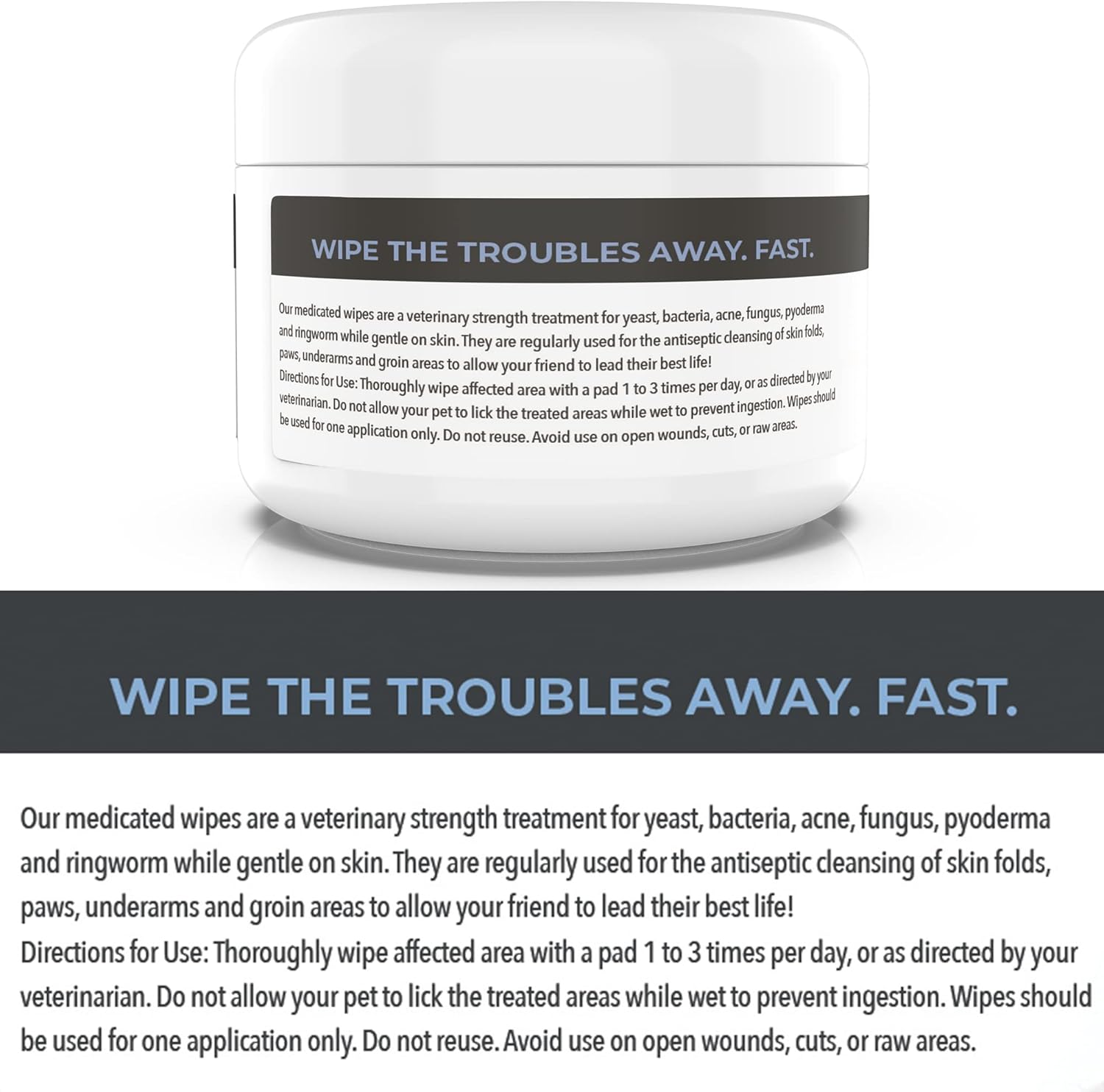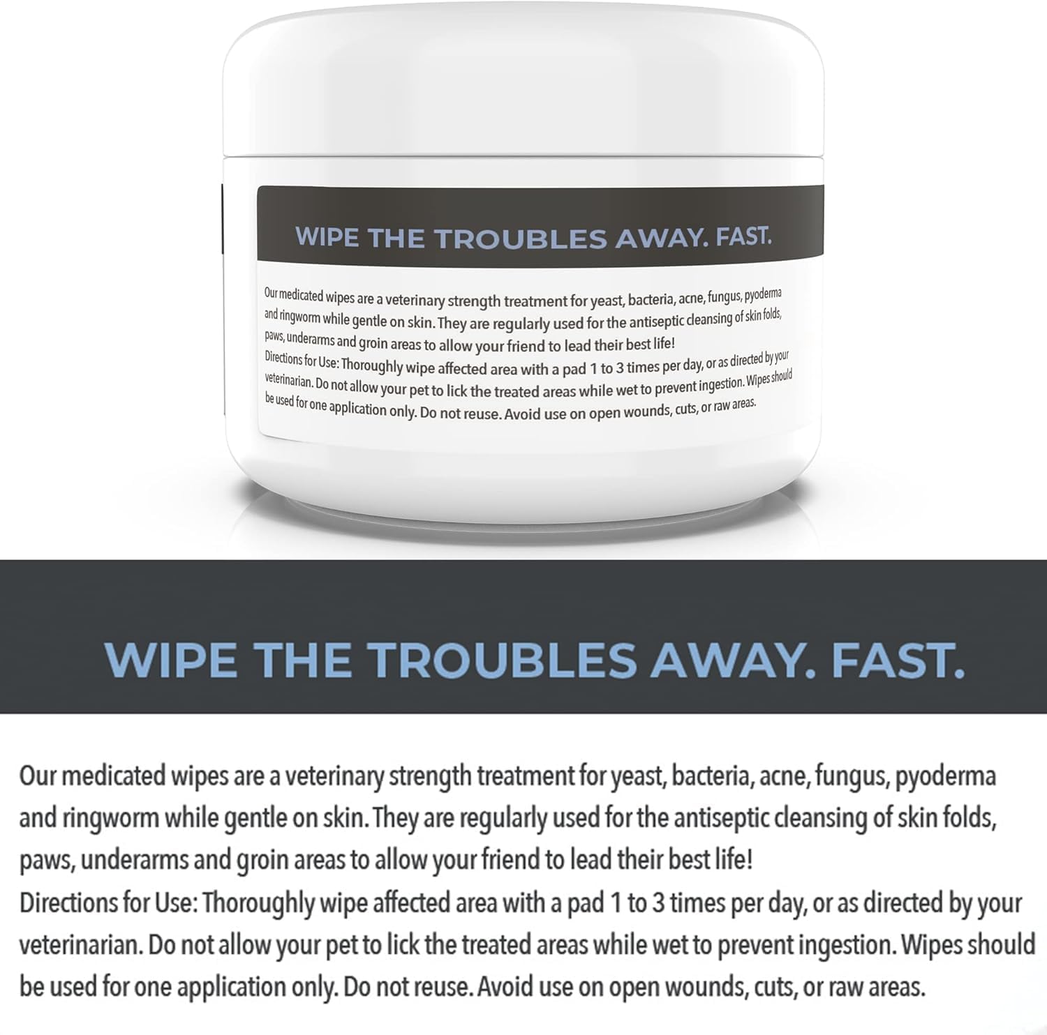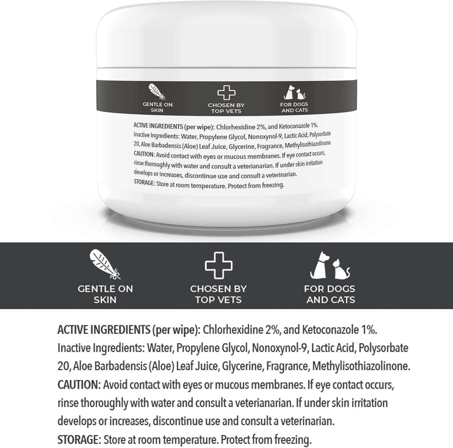 MEDICATED CAT & DOG WIPES: Ketoconazole & Chlorhexidine wipes for cats & dogs treat & eliminate skin infections. Great for a dog yeast infection, Fungus, Bacteria, Mange, Ringworm, Hotspots & Pyoderma. PERFECTLY SIZED: These chlorhexidine wipes for dogs and cats are wet, small (2.5”x2.5”) and thin enough to fit every crevice such as paws without discomfort. Perfect for hot spot treatment for dogs paws and bacterial, fungal, and yeast infections. SOOTHING WIPES: Effective active ingredients with soothing Aloe and Essential Fatty Acids help soothe infected areas. Great for hot spot treatment, mange treatment, pyoderma, ringworm, bacteria, fungal and yeast infection treatment for dogs & cats. SATISFACTION GUARANTEED: We guarantee our Antiseptic, Antifungal, and Antibacterial medicated wipes for dogs and cats will help alleviate your cat or dog's skin infections. If it doesn’t work, send us the remaining pads and we'll make it right! MADE IN USA: We produce these medicated wipes in our locally and federally regulated facilities. That is how we can guarantee the best treatment for common skin infections for your dog or cat or any animal. › See more product details