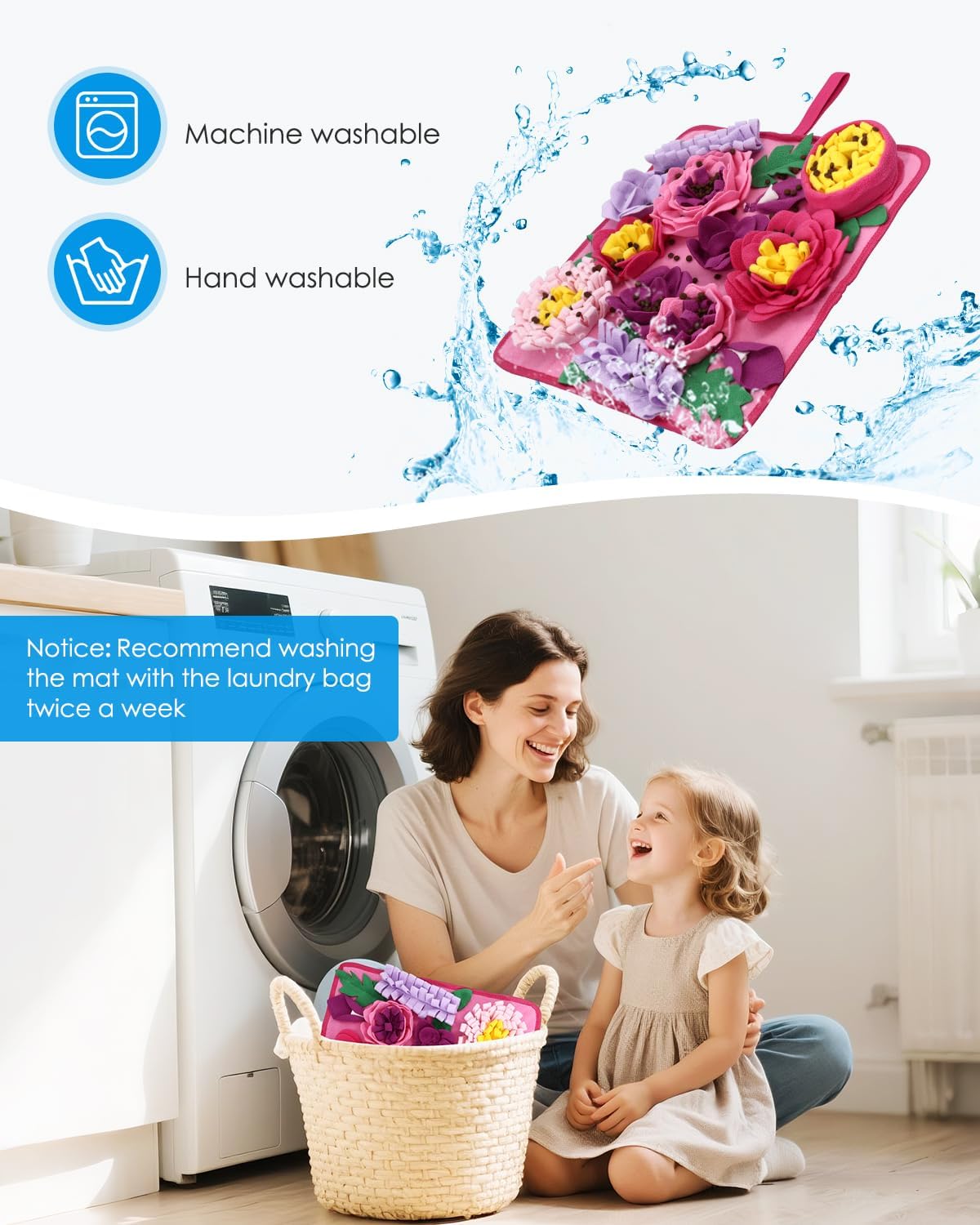 About this item ๐๐๐๐ & ๐๐จ๐ง-๐๐ฅ๐ข๐ฉ ๐๐ง๐ฎ๐๐๐ฅ๐ ๐๐๐ญ ๐๐จ๐ซ ๐๐จ๐ ๐ฌ: Made from pet-safe, high-quality felt and soft polar fleece, this washable dog sniffing mat features a non-slip bottom and secure hanging strap to keep it firmly in placeโperfect for energetic pups who love to dig and forage without sliding the mat across the floor ๐๐ฅ๐จ๐ฐ ๐ ๐๐๐๐๐ซ ๐๐ง๐ฎ๐๐๐ฅ๐ ๐๐๐ญ ๐๐ซ๐๐ฏ๐๐ง๐ญ๐ฌ ๐๐ก๐จ๐ค๐ข๐ง๐ & ๐๐ฅ๐จ๐๐ญ: Transform mealtime into a calming, brain-boosting activity! This interactive slow feeding mat encourages natural foraging behavior, slows down fast eaters, reduces risk of choking or digestive issues, and supports healthy digestionโideal for anxious or greedy dogs ๐๐ง๐ ๐๐ ๐ข๐ง๐ ๐๐๐๐ง๐ญ ๐๐จ๐ซ๐ค ๐๐จ๐ฒ ๐ฐ๐ข๐ญ๐ก ๐๐ซ๐ข๐ง๐ค๐ฅ๐ ๐๐จ๐ฎ๐ง๐: Keep your dog mentally stimulated with hidden treat pockets and built-in crinkle paper that sparks curiosity! This dog puzzle toy for mental stimulation mimics real-life scent tracking, helping relieve boredom, separation anxiety, and destructive behaviors like chewing furniture ๐๐จ๐ซ๐ญ๐๐๐ฅ๐ & ๐๐๐ฌ๐ฒ-๐ญ๐จ-๐๐ฅ๐๐๐ง ๐ ๐จ๐ซ๐๐ ๐ข๐ง๐ ๐๐๐ญ: Lightweight, foldable design (15.4"x15.4") with a handy hanging loop makes storage and travel a breeze. Made from natural and recycled materials, itโs machine-washable and perfect as an enrichment activity mat at home, in the yard, or on trips ๐๐๐๐๐ฅ ๐๐ง๐ญ๐๐ซ๐๐๐ญ๐ข๐ฏ๐ ๐๐ซ๐๐ข๐ง๐ข๐ง๐ & ๐๐ง๐ซ๐ข๐๐ก๐ฆ๐๐ง๐ญ ๐๐จ๐ฒ: Great for puppies and adult dogs of most breeds (not recommended for aggressive chewers), this anti-boredom snuffle mat doubles as a positive reinforcement training tool and fun bonding gameโproven to reduce stress, boost confidence, and satisfy your dogโs natural instincts! โบ See more product details