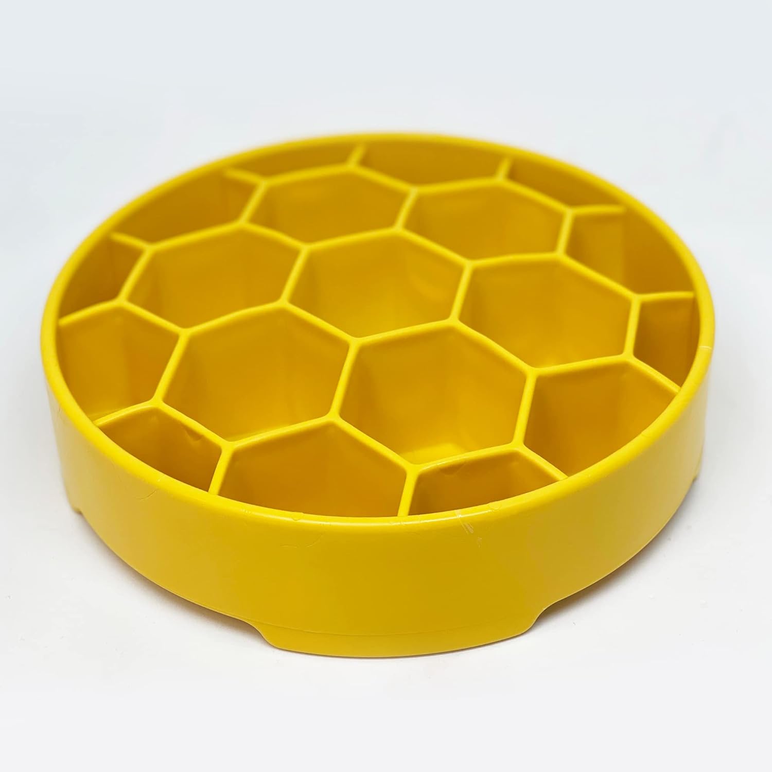 About this item FUN ENRICHMENT FEEDER – Discover all the buzz over this durable Honeycomb Enrichment Bowl, which promotes healthy, slower eating. It's great for serving wet & dry foods together and works for all dog sizes, including puppies. Size 8" x 8” BENEFITS OF ENRICHMENT FEEDERS – Promote mental stimulation, slow down eating, promote better gut health, engage natural foraging instincts, and stimulate saliva to aid digestive health. DURABLE MATERIAL – Made from a blend of 10 percent TPE (thermoplastic elastomer) and 90 percent polypropylene. It’s a very nice harder plastic material with a waxy matte finish that’s more luxurious than a typical plastic dog bowl. NON-TOXIC & DISWASHER SAFE – Our toys are made from the safest non-toxic proprietary materials that pass strict safety regulation, like Proposition 65, are BPA- & phthalates-free, food-safe, and top rack dishwasher safe. VETERAN-OWNED & MADE IN THE USA – Our US-based operations ensure that we keep production & jobs in America, operate to the highest standards, and provide products that are produced ethically, responsibly, sustainably and safely. › See more product details