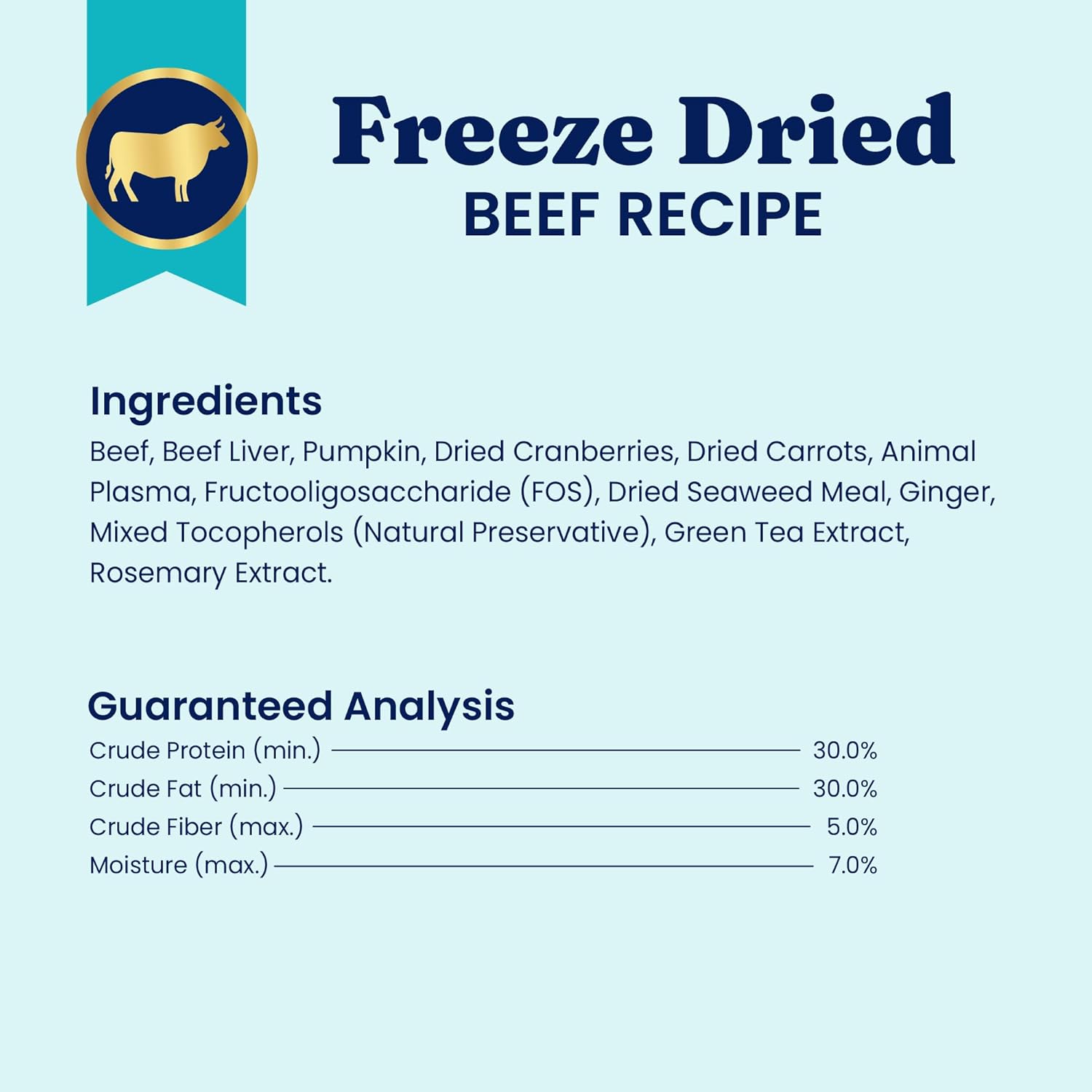 About this item Raw Freeze Dried Nutrition for Dogs – Solid Gold Freeze Dried Raw Dog Food Topper is made with real beef, organ meat & functional superfoods like pumpkin & cranberries. Use as a high-protein food topper for dogs or tasty freeze dried dog treat Digestive & Immune Support – This freeze dried raw food for dogs has a blend of plasma, amino acids & FOS prebiotics to support gut microflora, nutrient absorption & immune health—a great freeze dried dog food for picky eaters or sensitive stomachs Powered by nutrientboost – This freeze dried dog food for small breeds & large breeds has our nutrientboost blend to deliver protein, digestive support & nutrients in one tasty bite—ideal as freeze dried raw food for dogs or as dog meal toppers Easy to Serve, Great for All Breeds – Serve freeze dried training treats for dogs or sprinkle on their kibble for a dog food freeze dried option. This versatile freeze dried dog food is perfect for small breeds, large breeds, or as puppy food toppers Holistic Ingredients, No Fillers – Without grains or artificial additives, this freeze dried dog topper delivers protein-rich bites for dogs of all ages & sizes—perfect for parents seeking meal toppers for dogs & freeze dried treats for dogs › See more product details