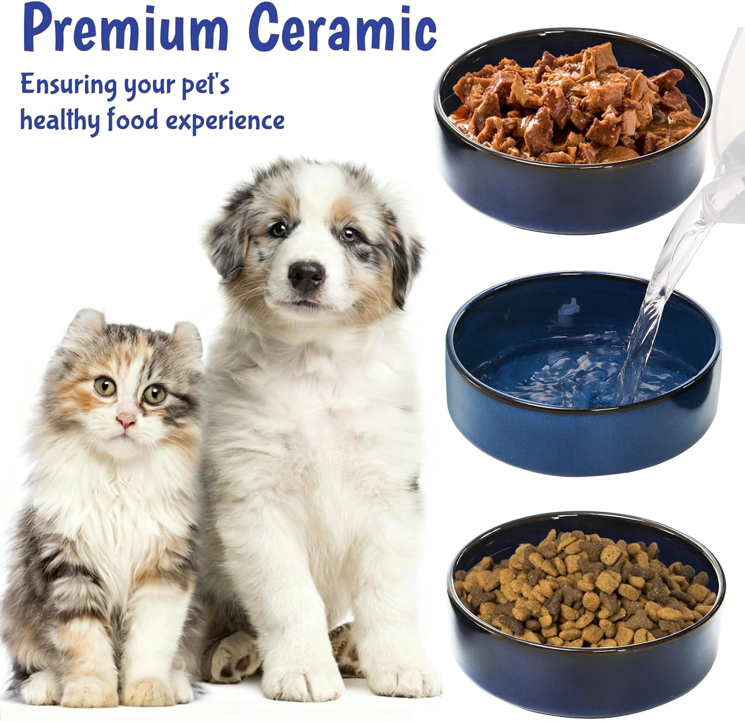 About this item Pet Food and Water Bowl Set: Include a slow feeding pet food bowl and a water bowl with a wooden stand, raising the dishes closer to your pet for more comfortable eating. size: 6.1" x 2"H. capacity: 1.5-2 cups or 17 oz. Suitable for dry/wet food and water High Quality Ceramic: SOUJOY Dog food and water bowl set is made of high-quality ceramic and wood, strong and durable. Ceramic prevents dark chin problems, protect pets' health Stable Stand: Our cat feeding dish come with a wooden stand, which is sturdy and heavy enough and do not slide around easily, can prevent food from spilling. Slow feeding design is more healthier to your furry friends Appropriate Height: Our elevated pet bowl with stand is designed at a scientific height and wide mouth, allow your dogs and cats to get foods easily and reduce neck burden. Perfect for different breeds of kittens and adult cats, as well as small and medium dogs Easy to Clean: The ceramic puppy bowl is active glaze finished, convenience to hand wash or dishwasher. This dog cat bowl is microwave safe, so you can safely heat your pet's food › See more product details