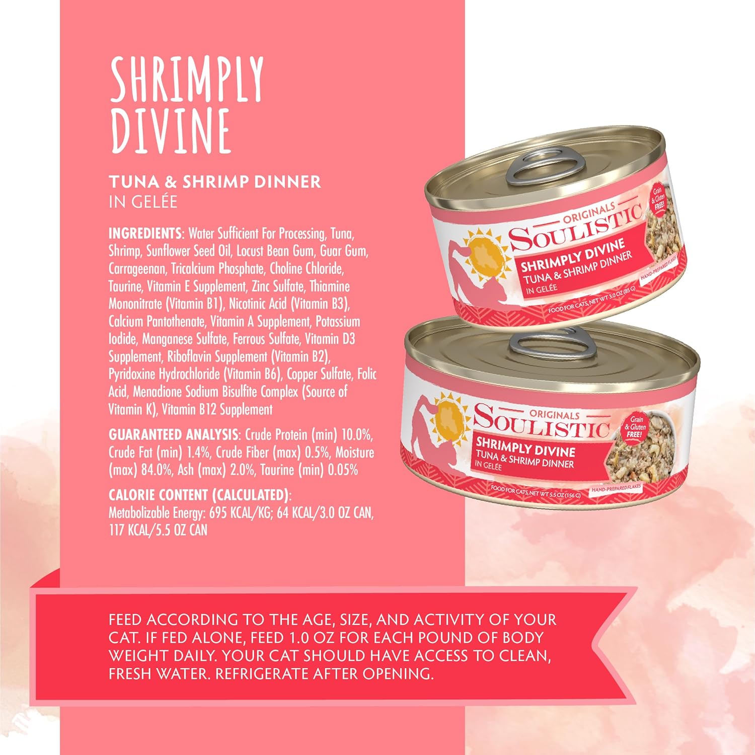 Feed your cat’s soul with a truly divine recipe featuring delicate flakes of wild-caught tuna paired with tender shrimp in a delicious gelée for a simple, hand-packed meal. With high-quality protein and natural moisture in every bite, it’s prepared to nurture your cat’s carnivorous nature with balanced, soulful nourishment. Loaded with real ingredients and a texture cats love, it’s a nourishing way to support their well-being.
