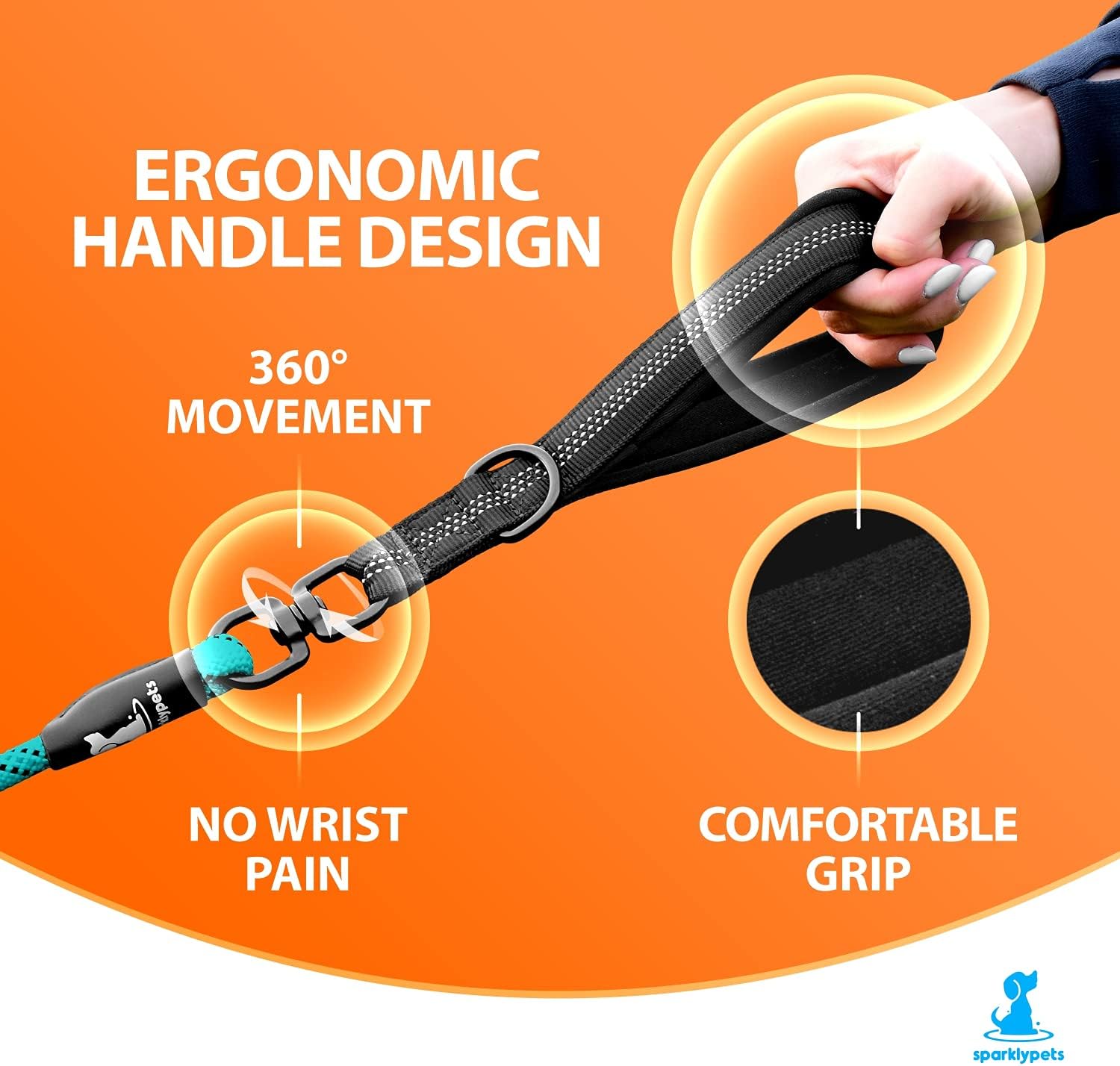 About this item No tangle swivels for more fun on walks – get a leash for two dogs for those tandem dog leash moments when you don’t want to worry about getting twisted. The dog leash splitter offers a 360° rotation control so that your dogs enjoy walks. Easy-grip handles for more control - being able to fully support your dogs may be crucial, especially when crossing a busy street. This dog double leash has 3 foam-padded handles that will allow you a firm and smooth hold when using the double leash for large dogs. You won’t feel them pulling with our two dog bungee leash - If you have strong dogs you need a dual dog leash that’s shock-absorbing. This dog leash for 2 dogs comes with reinforced bungee parts that prevent wrist pain from strong pullers. Our walking leash for dogs that pull will be the perfect no pull dog leash for large, medium and small dogs. Adjust the length of your double leash for dogs to suit their size - different breeds don’t mean different walks. Now you can walk your dogs together with this dog leash for two dogs and adjust the length of the extensions from 21 to 25 inches, to fit perfectly. Bungee dog leash for large dogs with ergonomic handle design - this unique handle doesn’t just look great. It brings a lot of functionality, from the padded handle that offers a comfortable handgrip to the extra 360° coupler that eliminates the risk of wrist sprain. › See more product details