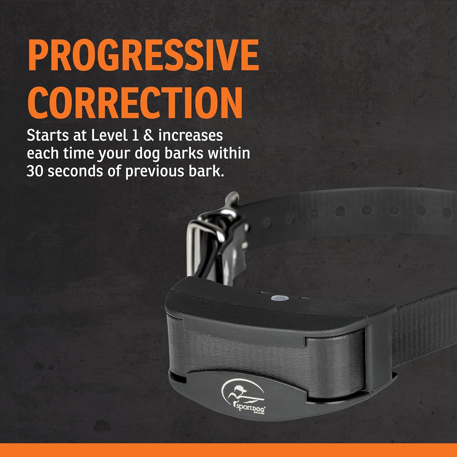 The SportDOG Brand no bark 10 is easy-to-use, effective, and customizable with 2 modes of operation: progressive correction and user-select. The user-select mode is designed for those high-drive dogs who are unaffected by the lower levels of static stimulation and tend to bark through the first levels of progressive correction. Equipped with patented Silent Partner technology. Designed specifically for identifying your dog's unique barking style, filtering out all other sounds to prevent false corrections. An automatic bark collar for dogs 8 pounds or larger with neck sizes 5" - 22", offers two selectable modes of operation, each provide 10 levels of static stimulation. As a versatile bark collar for dogs, it allows you to manually set the correction level, perfect for high-drive dogs who aren't affected by lower levels of static stimulation. As a no barking device for dogs, the NoBark 10 Collar can comfortably accommodate your dog, regardless of their size or breed. Trust in this anti barking device for dogs, the SBC-10, which is waterproof and submersible up to 25 feet using DryTek technology. As part of your dog training & behavior aids, you can be confident that the NoBark 10 Collar will continue to perform effectively, whether your dog is frolicking in the rain, swimming in the lake, or exploring in the snow. Among stop barking dog devices, benefit from the collar's rechargeable lithium-ion battery that charges in just 2 hours and lasts 200 hours per charge. This bark static collar includes an automatic shutoff feature that stops correction after 80 seconds, and a low battery indicator to alert you when it's time to recharge.