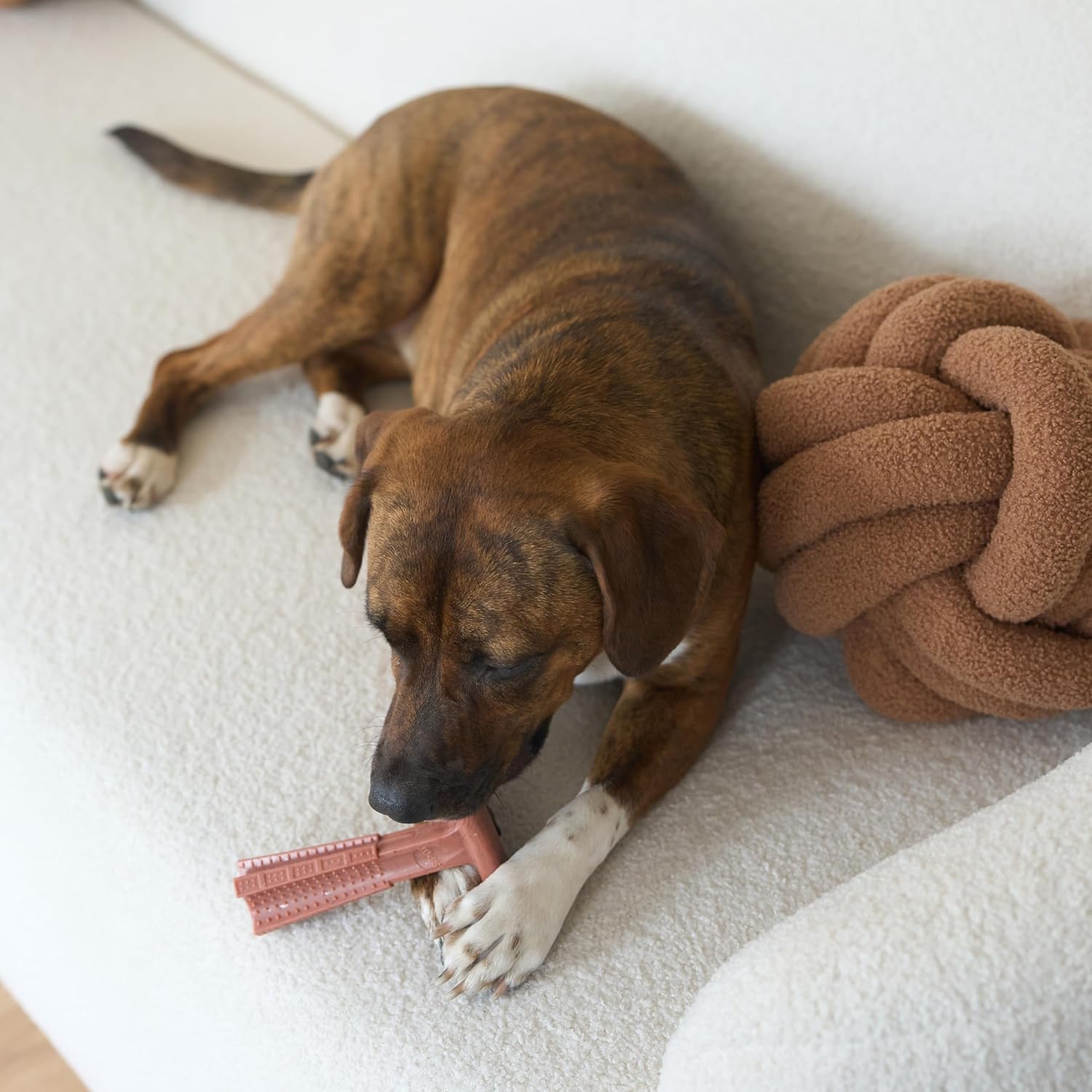 The SPOT Bam-bones PLUS T-Bone is the ultimate dog chew toy for aggressive chewers and teething puppies. Made from a durable blend of bamboo fiber and nylon, this sturdy toy is designed to satisfy your dog’s natural urge to chew while offering a safe, long-lasting outlet for their energy. Whether your dog is a large breed super chewer or a teething puppy, this toy is built to handle it all. With its tough construction, it’s perfect for dogs that need a toy capable of standing up to heavy chewing, making it one of the best puppy chew toys for teething and one of the toughest super chewer dog toys for large breeds. Designed for durability and promoting your dog's health, the SPOT Bam-bones PLUS T Bone helps improve dental hygiene by cleaning teeth and massaging gums while your dog enjoys chewing. It’s a great option for keeping your dog engaged, providing both enrichment and oral care in one product. The ergonomic T-bone shape features paw pads that make it easy for your dog to grip and enjoy. The dog chew toys for medium dogs also helps to reduce stress and anxiety, offering a tasty beef flavor that keeps dogs occupied and engaged, providing an excellent outlet for excess energy. Perfect for dogs that suffer from boredom or anxiety, the SPOT Bam-bones PLUS T Bone is a great addition to any dog's toy collection. As with all dog enrichment toys, it's important to regularly inspect the toy for signs of wear. Please review the included chart to know when to discard the current toy and replace it with a new one. While the SPOT Bam-bones PLUS T-Bone is designed to be incredibly sturdy and long-lasting, no toy is indestructible. For your dog’s safety, always replace worn-out toys to prevent potential choking hazards. With SPOT Bam-bones PLUS T-Bone, you’re giving your dog a tough, durable, and safe chew toy that not only satisfies their chewing needs but also promotes better health and reduces destructive behavior in and around the home.