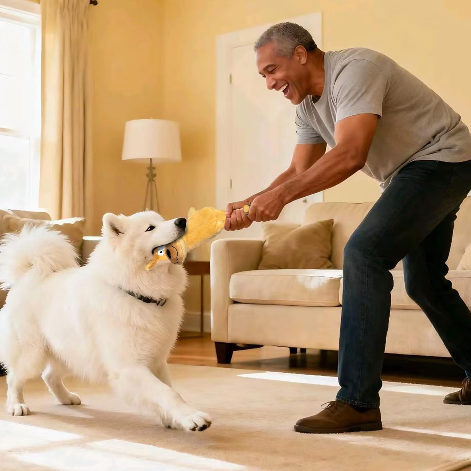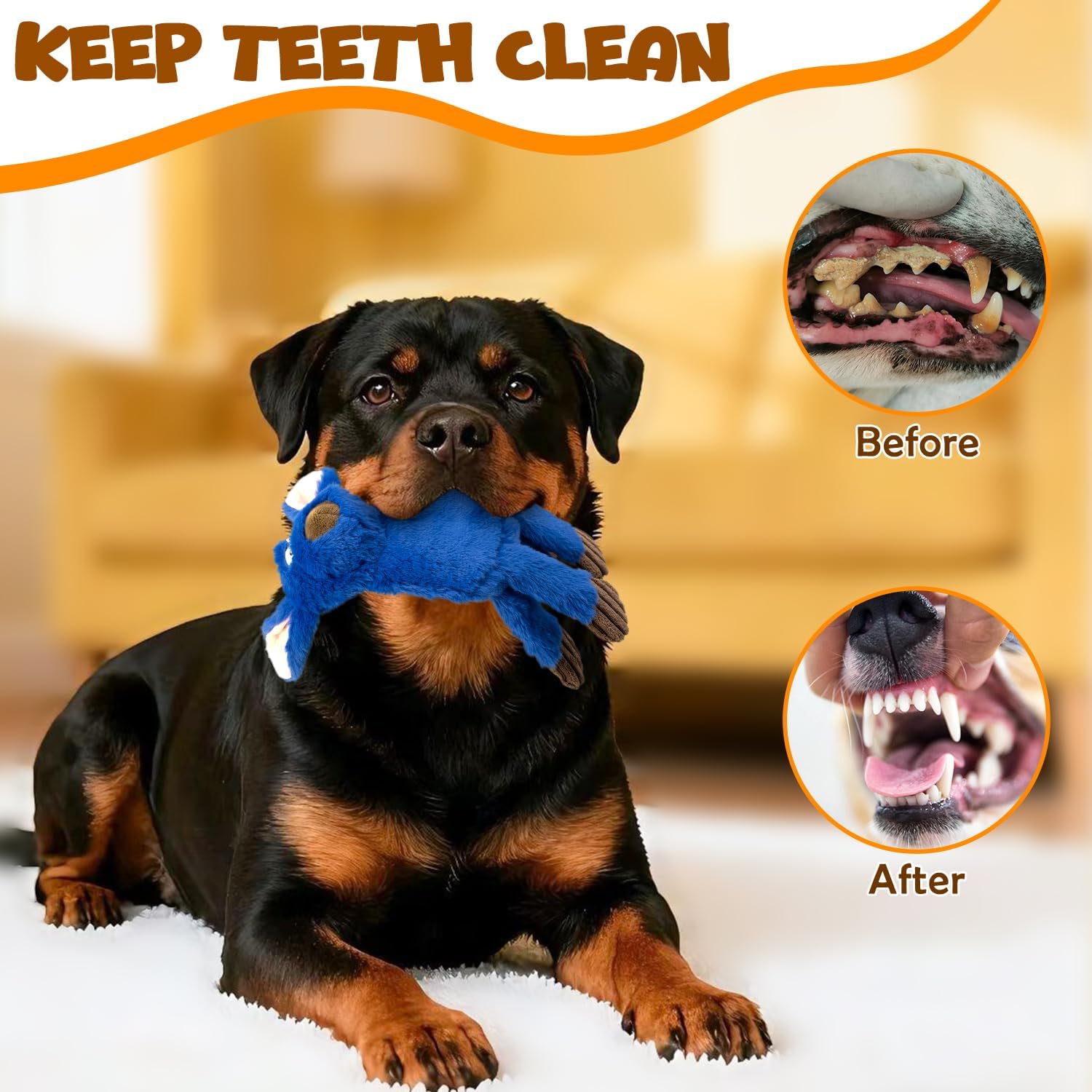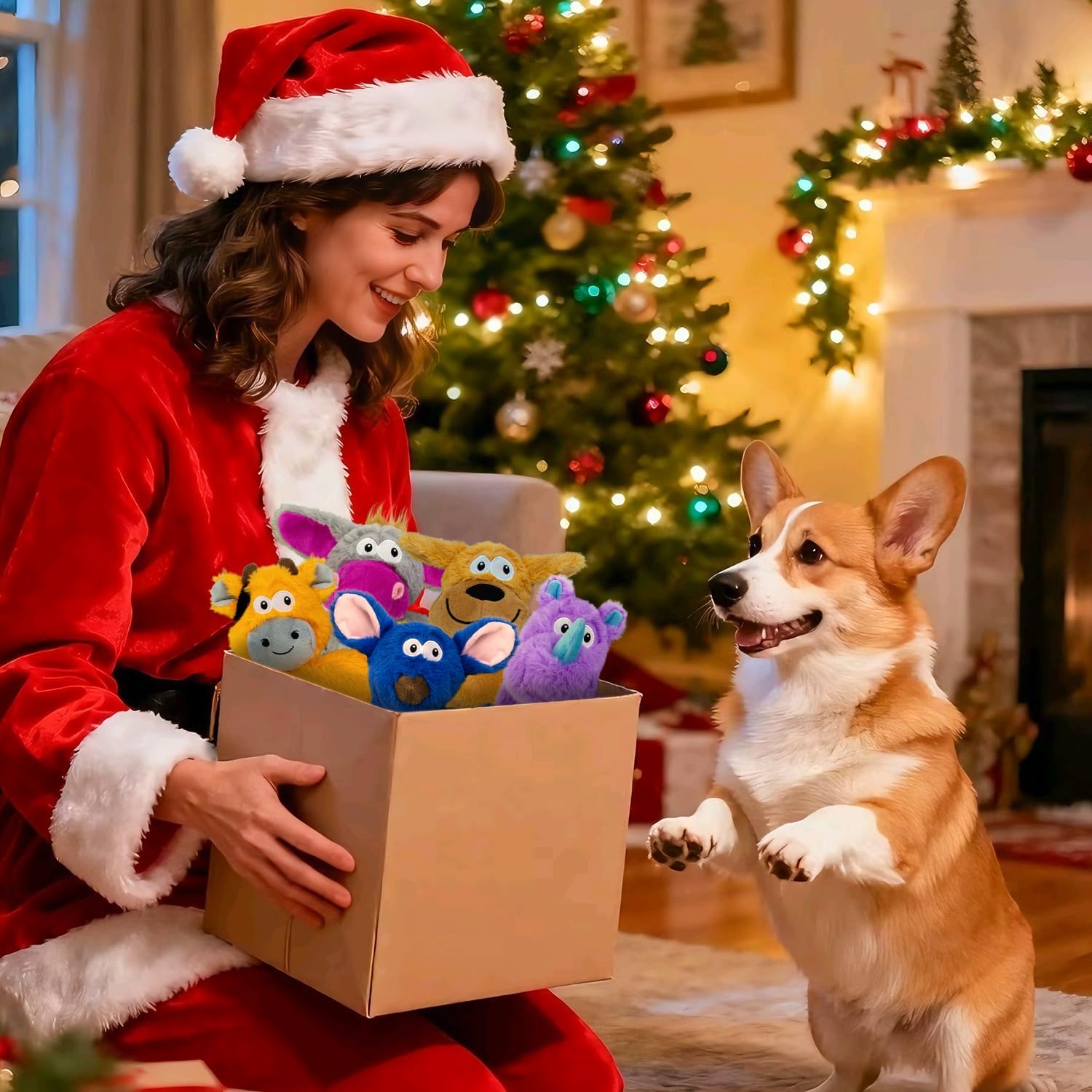 SUPER VALUE AND DURABLE & SAFE: Includes 5 Most Popular Dog Squeaky Toys,This assortment value bundle plush pet toy contains Rhino,Hippo,Puppy ,Donkey,Orange cow, Made of non-toxic premium quality plush fabric, incredibly safe, soft and durable,They can do chewing and teething, tug of war games to keep them helthy.This value pack includes a variety of shapes and sizes suitable for small dogs, medium dogs, and large dogs, making it great for multi-dog households or as long-lasting boredom busters. DOG TOYS WITH SQUEAKERS & CRINKLE: The Flat Toys for Small & Medium Dogs - Each unstuffed dog toy has a big squeaker,that can get the dog's attention,keeping your dog entertained for hours. These unfilled dog toys eliminate the risk of suffocation and reduce the burden of household cleaning by preventing excessive filling from spilling out when small dogs are pulling and chewing. Enjoy a safer and cleaner gaming experience with our durable non plush dog toys. HOURS OF FUN&INTERACTIVE DOG TOY :When you're not around, squeaking toys help release their anxiety and stress, clean their teeth, and reduce their destructive behavior. No longer worry about your dog being alone at home, or your pillow, sofa, shoes, etc. being damaged. With toys, dogs won't feel bored or chew on the house, and their excess energy will be released. GOOD QUALITY :Durable lining has been added to the toy to extend playtime and durability. We also reinforced all the seams to make the toy stronger.Order now and treat your pup to endless fun and stimulation! WARM TIPS FOR NO STUFFING SET: These toys are machine washable. Please kindly note these toys are not for very aggressive chewers, and we recommend supervised play, timely replacement of the broken ones. Please don't hesitate to contact us before or after your purchase with any questions or concerns, we will give you a satisfactory solution. › See more product details