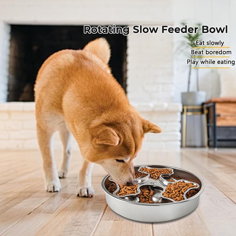 - Special Feature: 304 Stainless Steel Construction, Anti-spill, Rotating Design, Slow Feeding