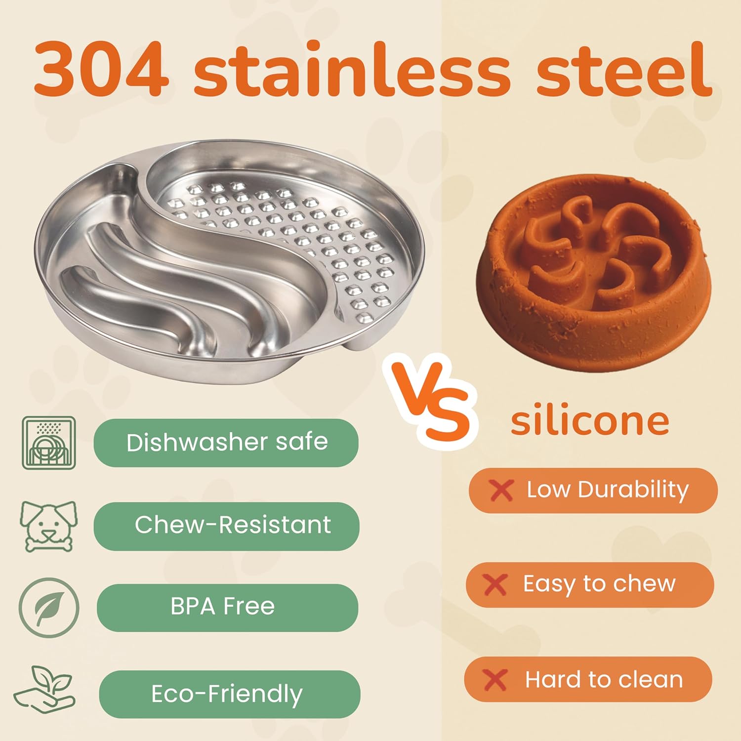 About this item 🔹 Slows Down Eating – Prevents Digestive Issues Encourages pets to eat slowly with its maze-like design, reducing the risk of bloating, vomiting, and indigestion. Supports healthier, calmer mealtimes. 🔹 Great for Both Wet & Dry Food Designed with raised textures and grooves to hold kibble, wet food, or spreadable treats like peanut butter. Keeps pets engaged and satisfied. 🔹 Licking = Calmer, Happier Pets The bowl has a built-in textured lick mat, ideal for spreadable treats like peanut butter or yogurt. Licking soothes anxious pets, reduces stress and destructive behavior, and supports dental health. Perfect for puppies, small breeds, and cats. 🔹 Durable & Hygienic Stainless Steel Made from premium rust-resistant steel. Unlike silicone mats, it’s ultra-tough, easy to clean, and safe for freezer and dishwasher. 🔹 Won’t Budge – Suction Base Keeps It Put Strong suction cups keep the bowl in place on smooth floors or tiles—perfect for messy eaters, grooming sessions, or training time. › See more product details
