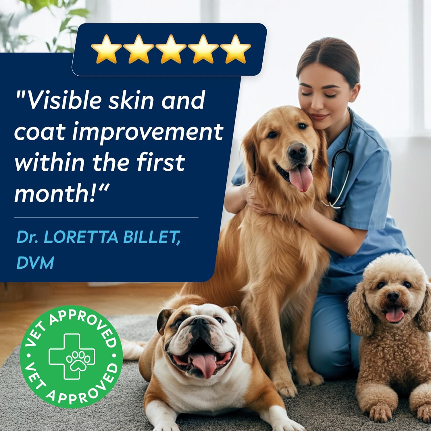 About this item Natural Salmon Oil Omega 3 for Dogs - produced with pure salmon fish oil, these chewable supplements are packed with vital Omega 3 6 9 fatty acids (EPA and DHA), essential vitamins and minerals. The chew is good alternative to liquid fish oil and can be used along with regular pet food and other products (like probiotics, multivitamin medicine etc) Dog Itch Relief, Skin & Coat Supplement - with high content of Omega fatty acid (at 500mg per serving), these anti-itch bites help your pet with dry skin and hot spot, reduce itching, irritated, sensitive, and flaky skin, stop shedding, promote healthy, soft and shiny fur and hair growth. Allergy Relief and Hip & Joint Health Combined - along with easing various types of skin allergies and symptoms (like scratching, paw leaking etc), these omega dog treats also work to support healthy hip and joints, boost mobility and energy, support immune system, heart and brain function, teeth and dental health. Great Value - 180 treats per Jar - you'll get a huge jar with 180 omega dog treats, that will provide up to 4 month supply of chewable treats. Made in USA our product has no soy, corn, dairy or sugar. All Breeds, All Ages and Size - treats are suitable for dogs of all breeds from small yorkie to large retriever, all ages from puppy to senior dogs. We also made sure your canine friend will love the taste and they will eagerly wait for the treatment, unlike with pills, tablets or capsules. › See more product details
