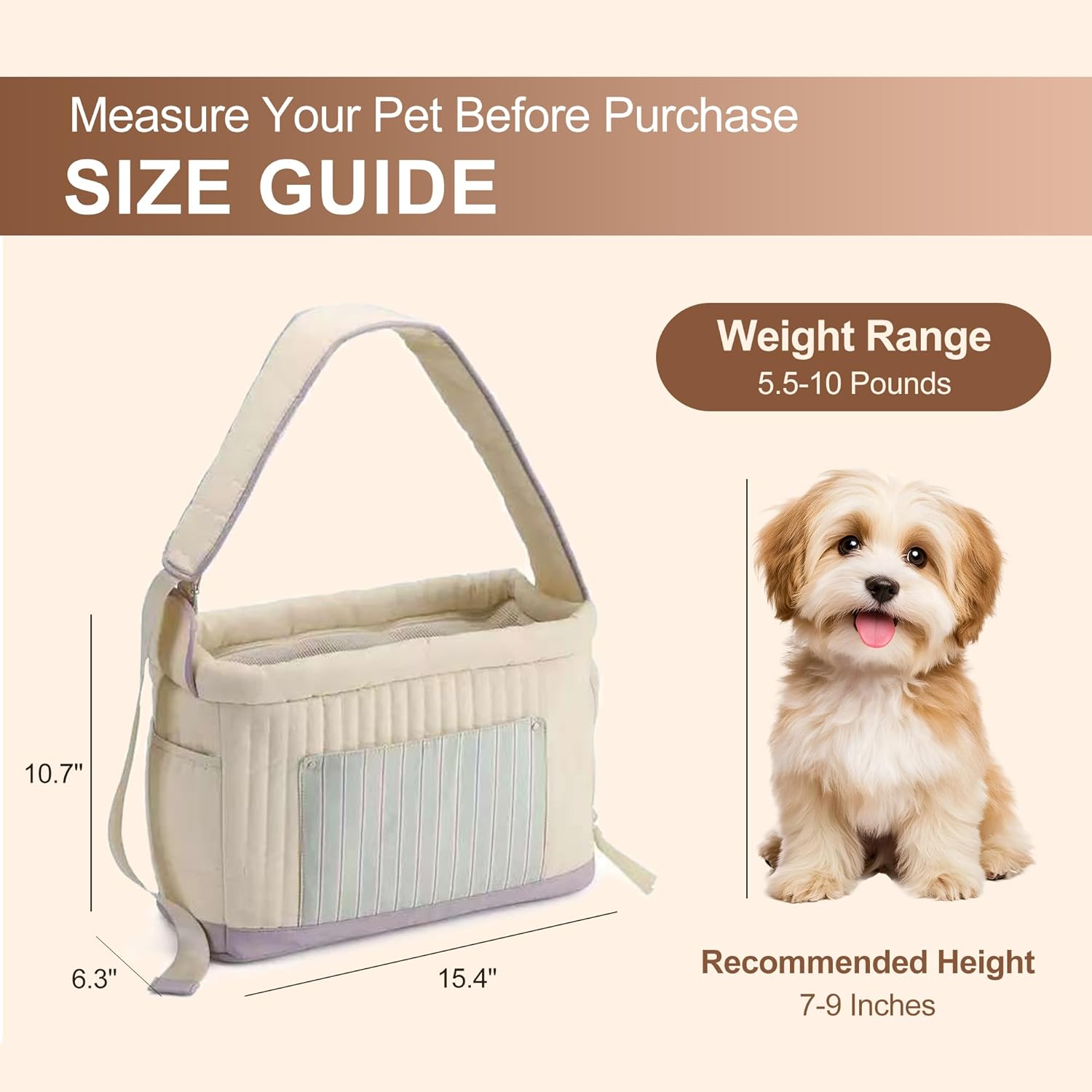 About this item Lightweight & Portable Design: Say goodbye to bulky carriers! Our dog carrier sling is designed to be ultra-lightweight and easy to carry, making it the perfect choice for spontaneous outings or daily adventures. Just slip it on and go—enjoy hands-free freedom with your best friend Ultimate Comfort & Support: Give your pet a cozy ride every time. This puppy carrier purse includes a soft, padded bottom that provides a stable and comfortable surface for your furry friend to rest on. It's like a portable bed they can snuggle into, ensuring they feel secure and relaxed on every outing Secure & Breathable Travel: Your pet’s safety is our top priority. Our small dog carrier features a secure opening with a built-in safety buckle that attaches to their collar or harness, preventing escapes. The large breathable mesh window provides excellent airflow, keeping your pet cool while they enjoy the view Smart Storage for Essentials: Designed with a spacious front pocket, this dog tote lets you store essentials like your phone, keys, and treats. No need for an extra purse—everything you need is right at your fingertips, so you can focus on enjoying your time with your pet Comfort & Safety First: Our dog carrier sling features a wide, adjustable shoulder strap that evenly distributes weight, significantly reducing pressure on your shoulder. The durable, skin-friendly fabric is ideal for daily use, while the strong construction ensures your pet stays safe and sound › See more product details