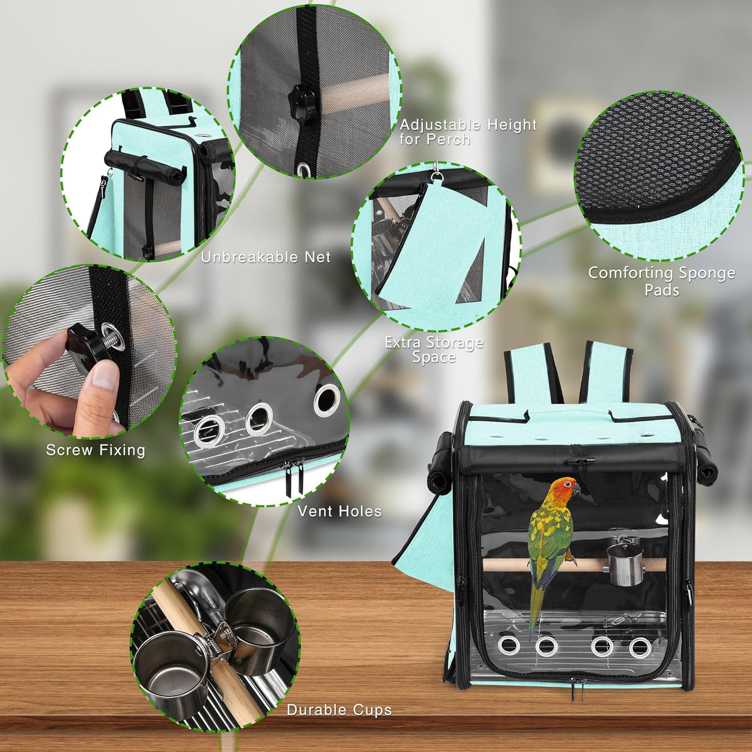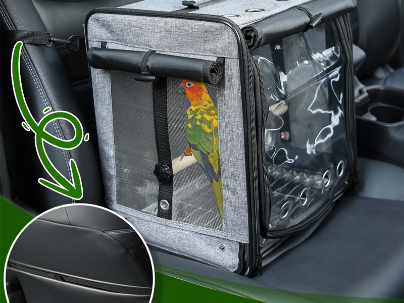 About this item 【STAINLESS STEEL MESH】 Roll up the sunshade of the bird travel cage and fix it. You can check the status of your bird at any time through the transparent window. The side of the bag is equipped with anti scratch 304 stainless steel mesh to ensure sufficient air circulation and no bird can chew it out. 【ADDITIONAL OPENING AT THE BOTTOM FOR EASY CLEANING】We have designed a new opening and zipper at the bottom of the bird carrier backpack. Convenient for you to clean the tray at any time. This way, even for long-distance travel, you can clean the tray and keep it clean at any time without dismantling the perch or taking out the birds. 【HEIGHTENING DESIGN】Unique shape, light and lovely. The heightening design of the bird travel carrier meets the jumping behavior of birds. 【SAFE CAR TRAVEL FOR BIRD】Suertree travel bird cage is made of ultra light material, which makes it easy to carry. We have equipped our backpack with a specialized seat belt. The bird cage can be tied to the car seat with the seat belt to ensure the safety of birds when driving. 【SIZE & SERVICE】 13.7" L * 11" W * 15.1" H. Suertree bird carrier size is suitable for most pet birds. Suggested for Cockatiels, Conures, Quakers, Caciques, Mini Macaws, Parakeet, small Cockatoos, Lories, and other similar size parrots. If you have any questions, please feel free to contact us. We provide 24h service. › See more product details