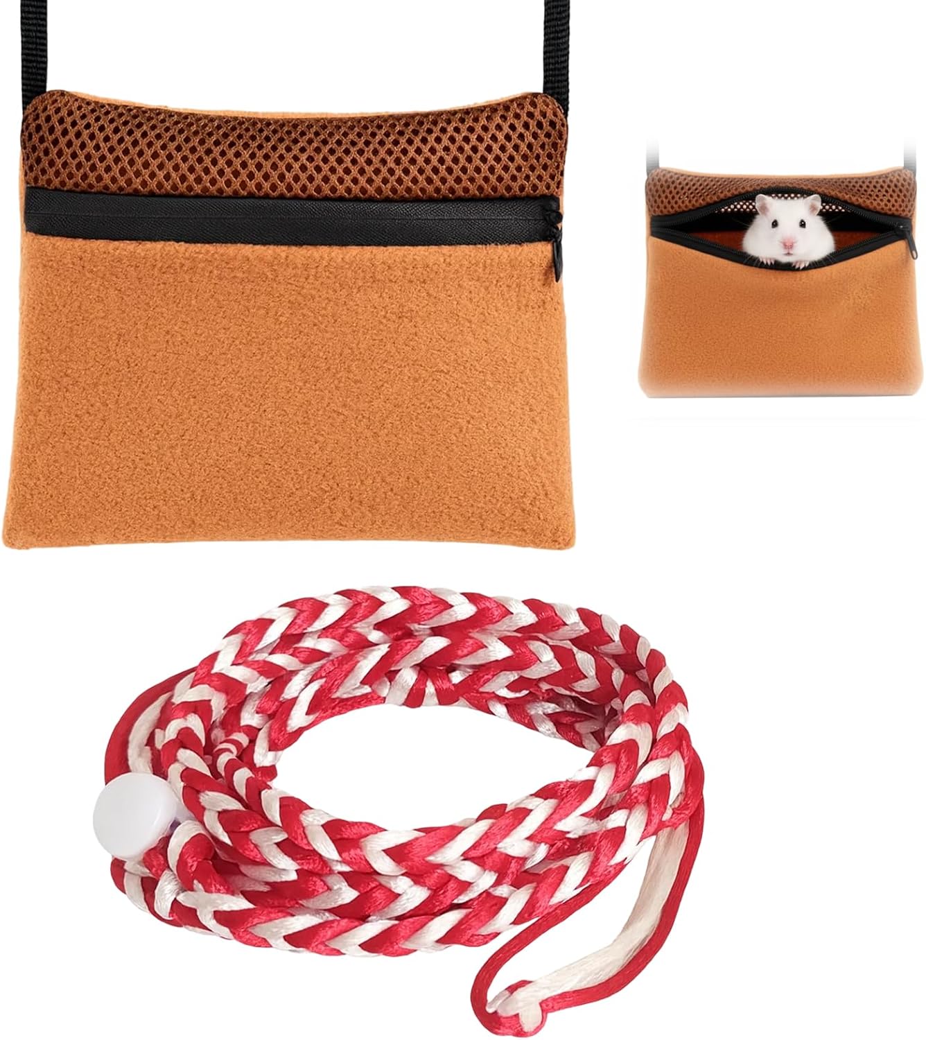 Introducing the Sugar Glider Pouch, a comfortable and secure carrier designed for sugar gliders and other small pets. Made from soft fleece material, this pouch provides a cozy space for your pet, while the breathable design ensures proper ventilation. The included red nylon leash is durable and adjustable, offering a secure fit for outings.This bonding pouch is perfect for travel, vet visits, and outdoor adventures. The compact design makes it easy to carry, and the reinforced stitching enhances durability. Whether you're bonding with your sugar glider or simply taking them out, this pouch is an excellent choice.Enhance your pet's comfort and safety with the Sugar Glider Pouch. The soft material keeps your pet relaxed, while the sturdy leash ensures they stay close. A must-have for sugar glider owners looking for a reliable and comfortable carrier.