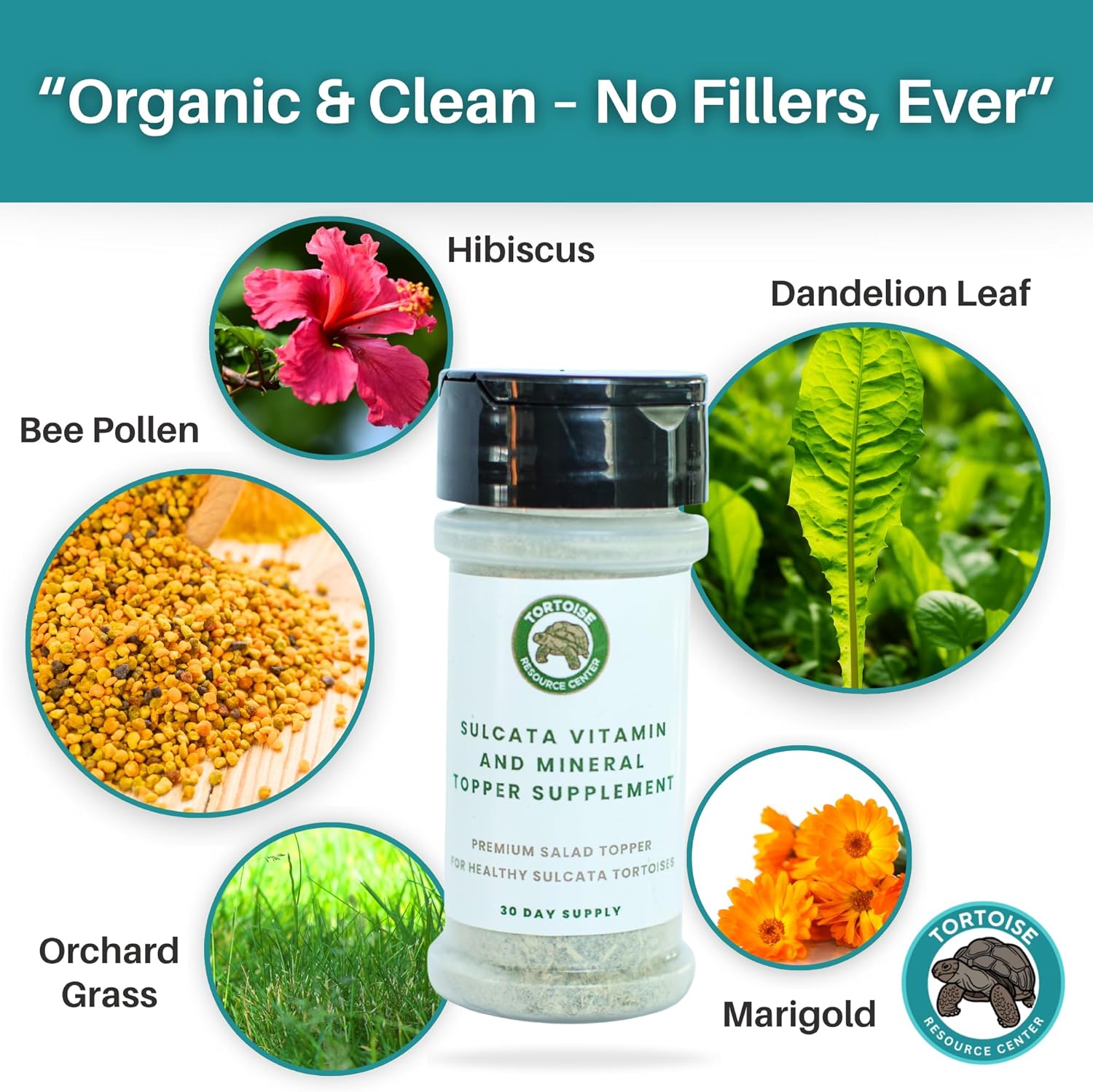 About this item IS YOUR SULCATA MALNOURISHED? Many sulcata owners don't realize these grassland tortoises need specific vitamins, minerals and other nutrients to stay healthy. Supplement your sulcata's diet – make sure your tortoise is getting all the vitamins, minerals and nutrients it needs for health, growth and immunity. IS YOUR TORTOISE GETTING ENOUGH FIBER? Grassland tortoises like sulcatas need high fiber to thrive - and too much protein can hurt them. Our products are designed specifically for sulcatas with high Fiber, Low Protein Formula – Ideal for herbivores like sulcatas, which need high fiber diets, promoting digestion and overall shell growth and health. ARE YOU GIVING YOUR SULCATA ENOUGH CALCIUM AND MINERALS? Our products are scientifically formulated to support healthy shell growth – Includes natural sources of calcium and minerals to give tortoises all they need to strengthen and develop shells. SCIENTIFICALLY FORMULATED DIET – Designed by a herpatologist (a scientist that studies reptiles) specifically for baby grassland tortoises, supporting their unique dietary needs with essential minerals. Pure Organic Ingredients – Free of artificial colors, preservatives, or fillers, and made in the USA for the highest quality assurance. A woman-owned small business. INCLUDES YOUR SULCATA CARE BONUS PACK: Including The Ultimate Sulcata Nutrition Guide, the Ultimate Sulcata Care Webinar, a coupon to save on your next order and a Sulcata Growth Tracking Journal! Join our Facebook group of tortoise parents and learn more. › See more product details