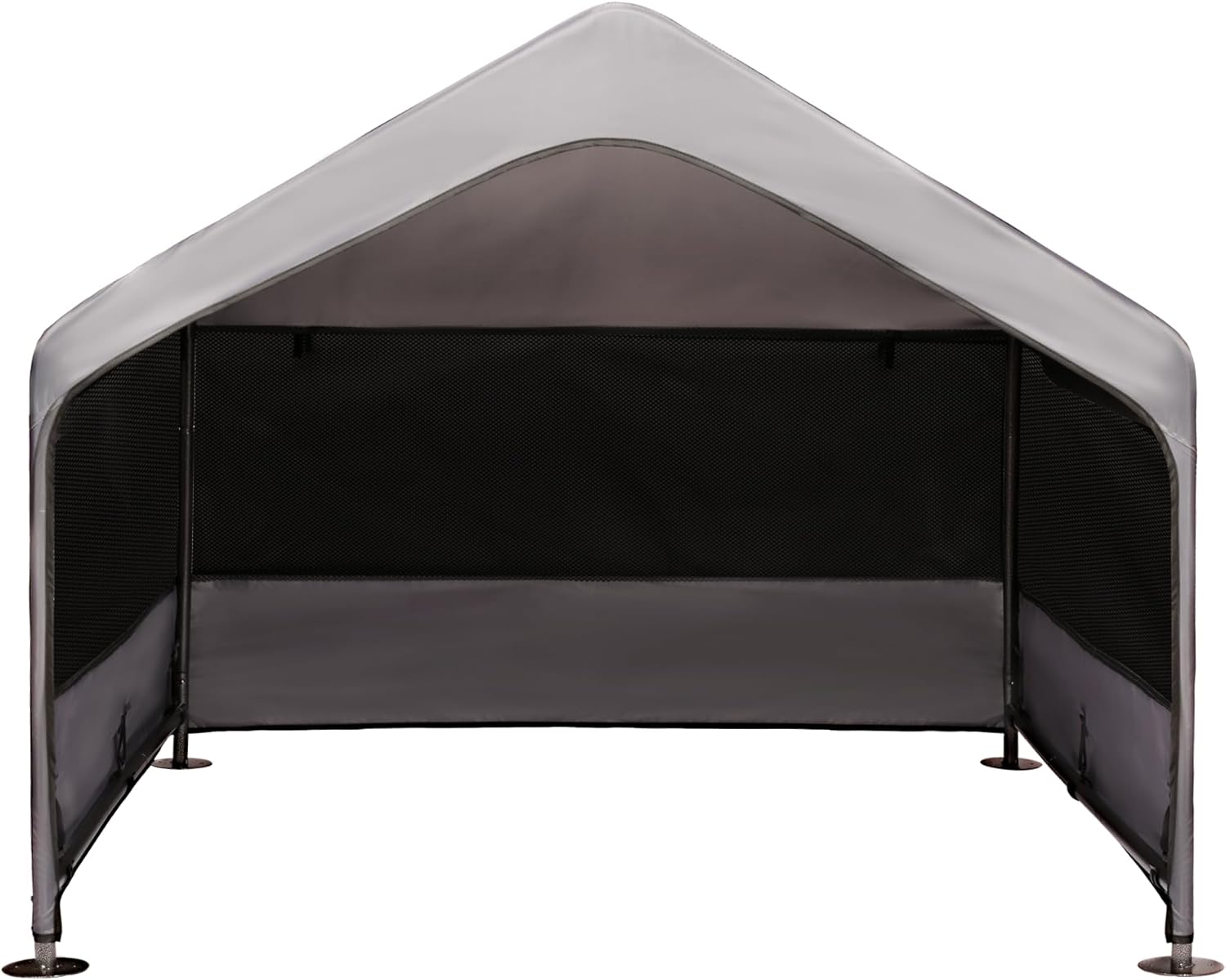 About this item Wind & Rain Resistant: Equipped with a waterproof PU coating and stakes to secure the shelter during strong winds and rain Secure & Tight-Fitting Canopy: The canopy fits snugly with hooks and elastic cords to keep the fabric tight and wrinkle-free Spacious Design for Large Breeds: Perfect for medium to large dogs like Golden Retrievers, German Shepherds, Huskies, and more Outdoor Sun Protection: Keeps your pet cool and comfortable outdoors with durable Oxford fabric Durable Steel Frame: Built to last with a rust-resistant steel structure for long-term stability and reliability Easy Setup: No tools or screws required, assembles in just 15 minutes with clear instructions › See more product details