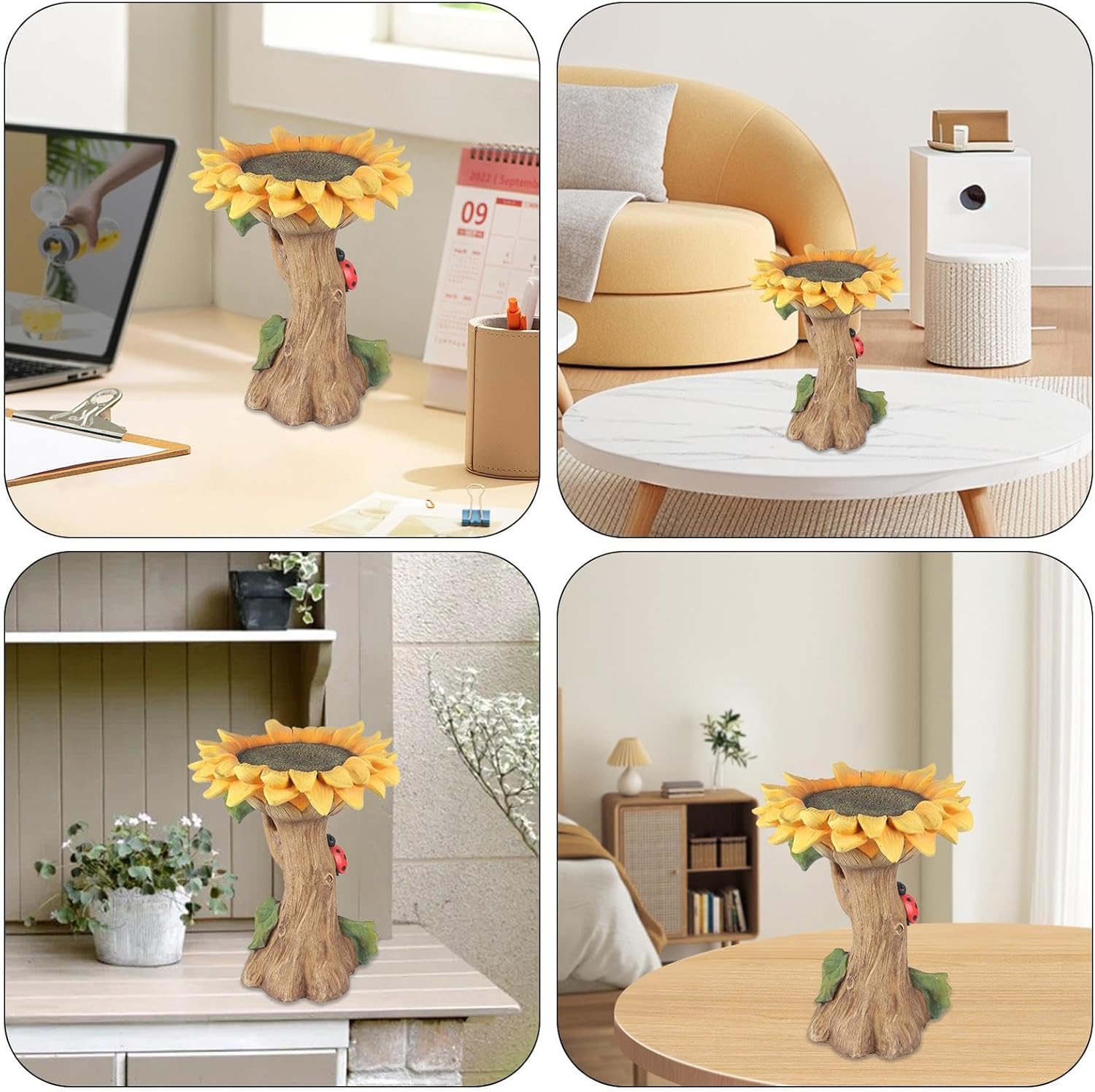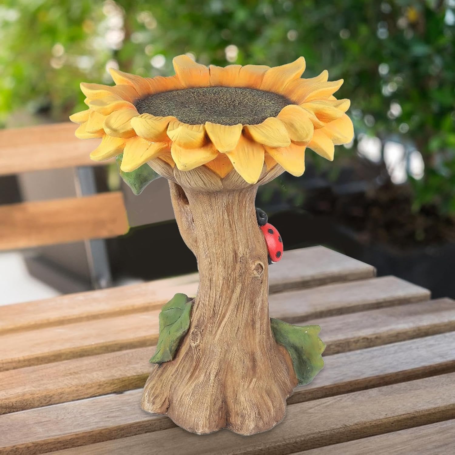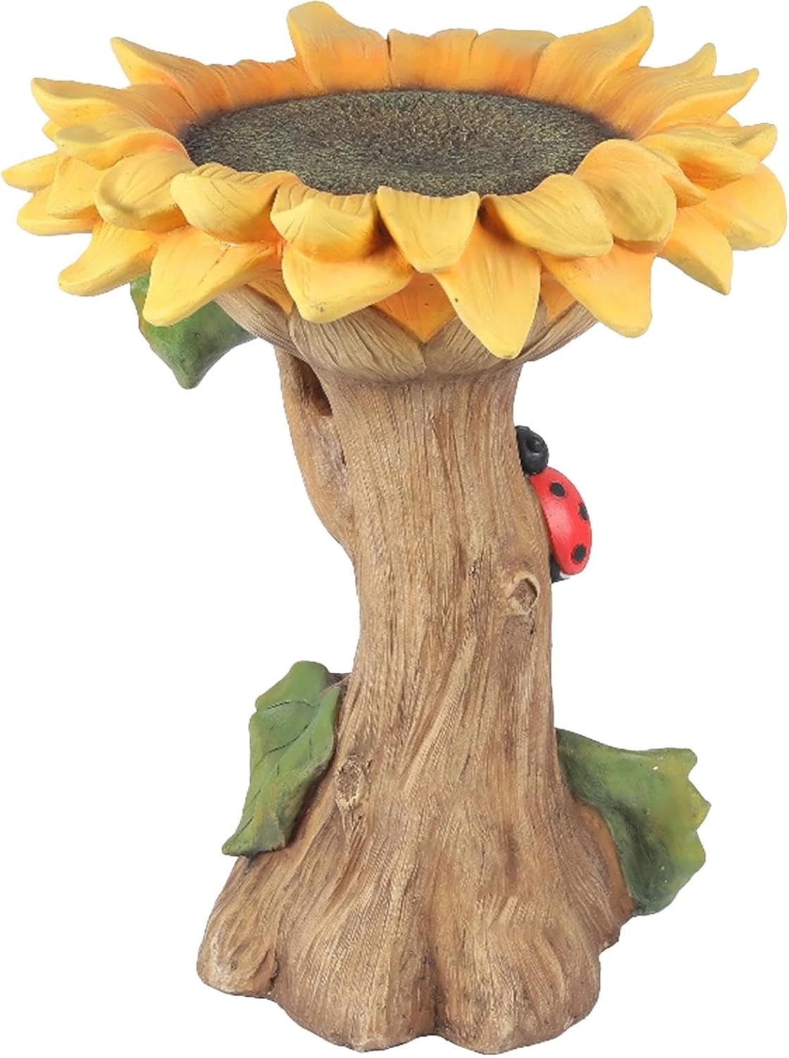 Bring beauty to nature into your garden with our polyresin sunflower bird bath. Encourage a variety of birds and wildlife to visit your garden by being water resistant, ensuring long-term use outdoors without fading. Every detail is intricately sculpted, from the base 'tree to the petals, to the leaves. You can also place it in various rooms such as bedrooms, living rooms studies, providing birds with a perch and tray for fun. Specification: Material: Resin Packing List Outdoor Sunflower Bird Bath x1