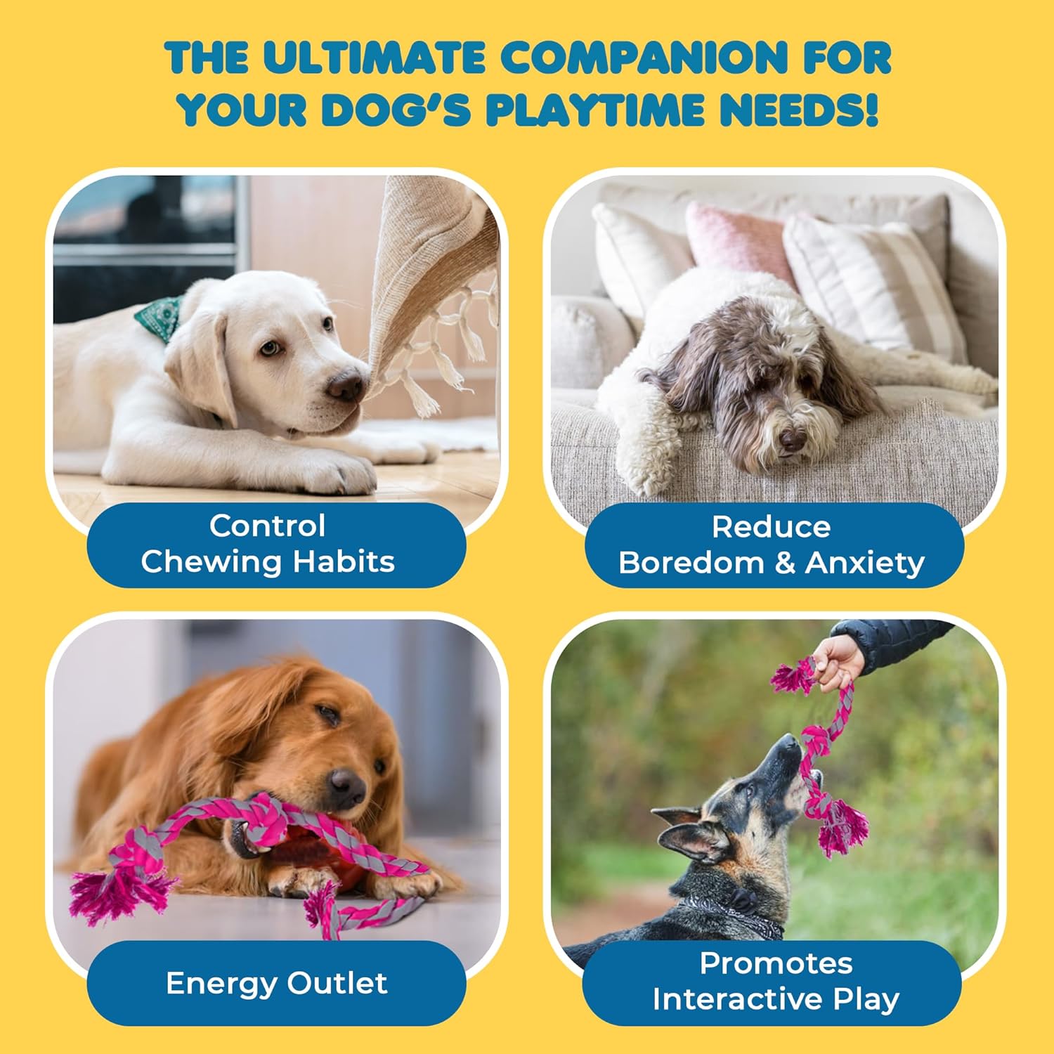 Durable Materials --- The amusing pair of SunGrow Triple Knotted Rope Bones are tightly twisted, durable cotton yarn. Our 20” heavy-duty dog toys are designed for daily engagement. Encourage Movement --- Perfect for dog tug-of-war and other games, our tug toys for large dogs provide entertainment and exercise for the whole family. Restrict Unwanted Chewing --- Young teething puppies will chew on furniture, shoes, socks, and other personal items. Distract them by offering our strong dog ropes. The knotted and twisted design withstands their teeth without fraying or ripping. Maintain Dog’s Teeth --- When your aggressive chewers chew on the soft yet durable knotted rope bone, they will inadvertently be flossing their gums and trimming their teeth. Brightly Colored --- If your pet likes to hide his stuff, the brightly colored Rope Bone is easy to find. Whether it is under the couch, on the bed, or in the doghouse, the vibrant dog ropes will stand out and be easy to recover. › See more product details