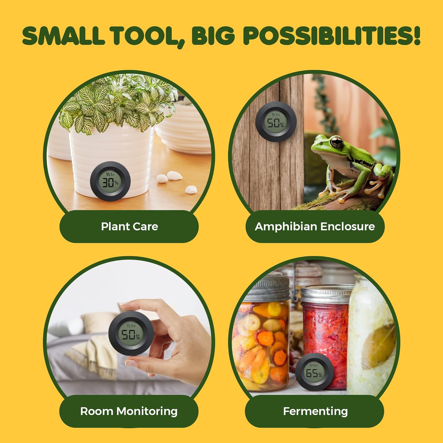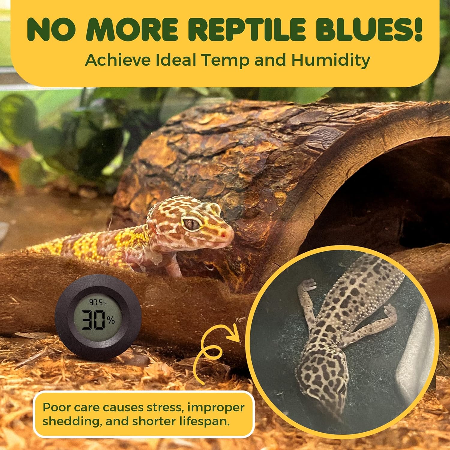 About this item Accurate Dual Functionality--- Reptile Thermometer with Hygrometer by SunGrow provides precise temperature and humidity measurements, which are essential for maintaining an ideal surrounding in any reptile tank. Effortless Monitoring --- Our terrarium thermometer features a round digital display that lets you easily check your pet's tank conditions with a quick double-click to switch between ℉ and ℃. Fits Any Terrarium Setup --- Measuring just 1.8”x1.8”x0.6” and weighing only 0.75 oz., our device easily fits in small or large enclosures for snakes, geckos, lizards, frogs, bearded dragons, turtles, and hermit crabs. Fast Updates --- With a humidity range of 20% to 99%, 1% resolution, and 10-second sampling, our gauge delivers real-time readings to help maintain your reptile's ideal habitat. Quick Setup --- Our reptile terrarium accessory, with a clear LCD display and durable ABS shell, arrives with a pre-installed LR44 battery. Position it in your reptile tank for reliable monitoring. › See more product details