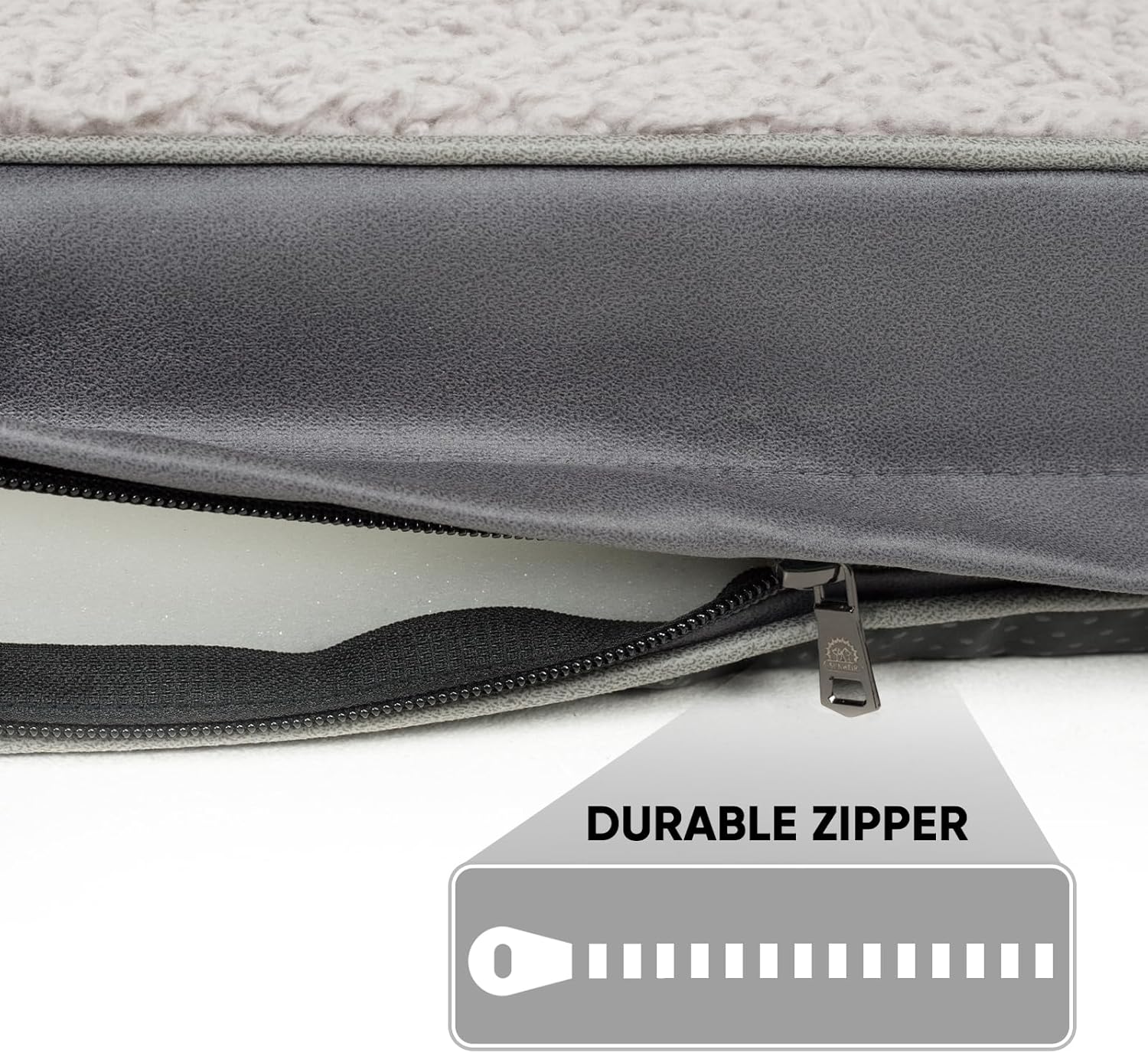 About this item SUPER SOFT PLUSH FABRIC - The dog bed cover is made of super soft plush fabric which is provides a soft tactile experience for your pet 3-LAYER DESIGN - Our dog bed cover has a soft 3-layer construction. The outer shell is plush and fluffy for a soft feel, while the waterproof layer prevents liquid leakage. The bottom has anti-slip granules for slip resistance and noise reduction EASY TO CLEAN - With our Washable Dog Bed Covers, cleaning becomes a breeze. Simply remove the cover and toss it into the washing machine for a quick and convenient clean. Say goodbye to the hassle of hand-washing or expensive dry cleaning COVER ONLY - Please note that this product comes WITHOUT a foam base.Recommended to take measurements of your existing foam mattress core to ensure a proper fit with the dog bed cover VERSATILE & STYLISH - Our Washable Dog Bed Cover fits most standard-sized dog beds. It's functional and aesthetically pleasing with a neutral color and sleek design, complementing any home decor › See more product details