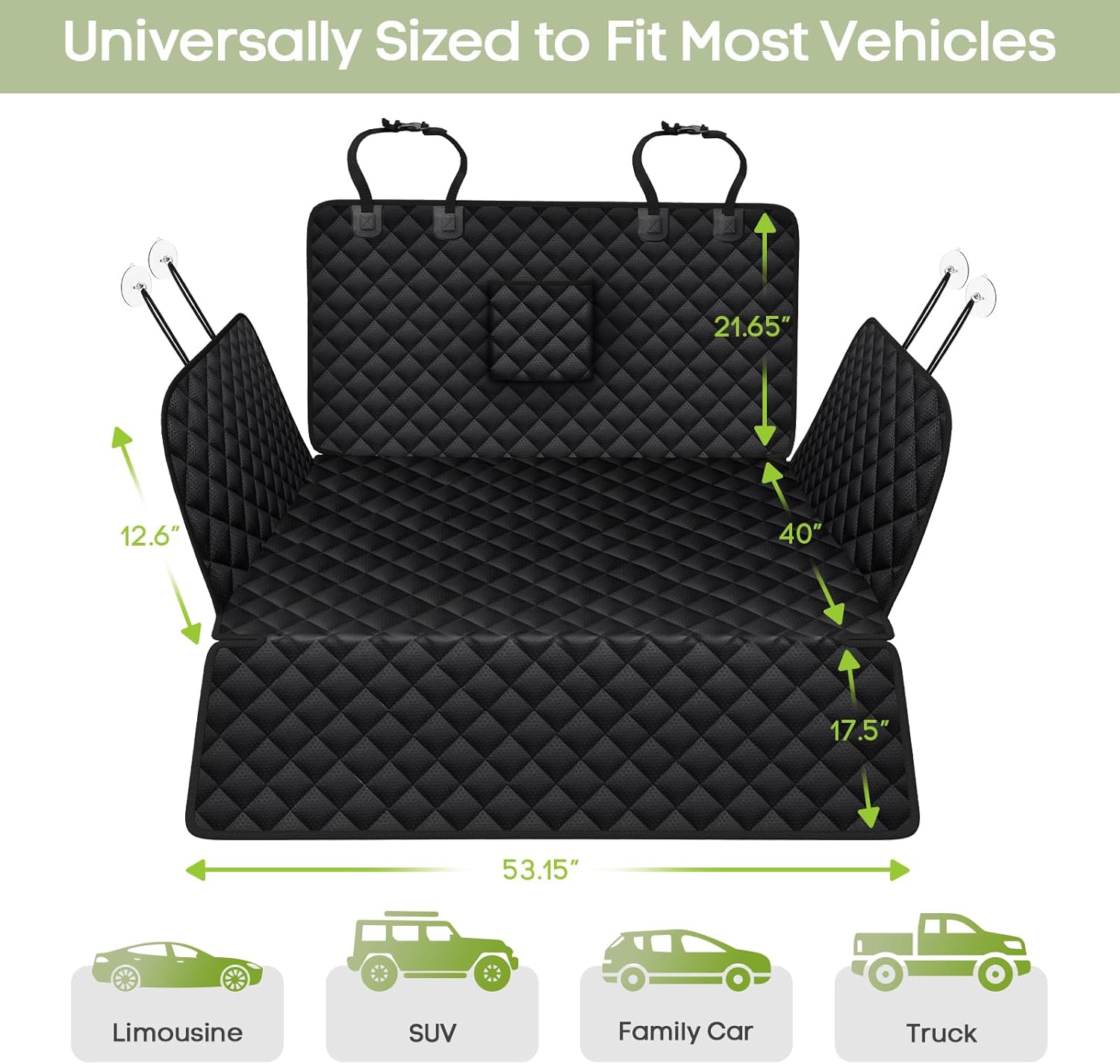 About this item Large Size & Universal Fit: Featuring expansive 53" x 79" dimensions, this foldable pet cargo cover is designed for a custom fit in full-size SUVs, mid-size SUVs, compact crossovers, minivans, and sedans. Ensure your pet has ample room to sit or lie down comfortably. Please measure your vehicle's cargo area before ordering. Complete Interior Protection: Beyond the cargo area, enjoy extended defense. Smatto dog seat mat features a 40" x 12.6" side flap to protect car interior walls from claw marks and an integrated bumper flap to guard against scratches when pets enter/exit or rest on the trunk edge. Superior Non-Slip & Secure Design: The dog trunk cover features an extra-large anti-slip rubber backing (53" x 40"), 2 suction cups and 3 strong Velcro straps to prevent mat movement during sudden stops or turns. Pro tip: Moisten suction cups for maximum hold. Water-Resistant & Effortless Cleaning: Made of 4-layer quilted 600D Oxford fabric, this cargo liner provides a water-resistant shield against spills, mud, hair, and dirt. Simply wipe clean, vacuum, or hand wash for quick maintenance. Versatile Multi-Purpose Use: More than a cargo liner, it doubles as a reliable seat cover, a comfortable outdoor picnic mat, or a protective sheet for moving day. A practical and thoughtful gift for pet owners and families. › See more product details