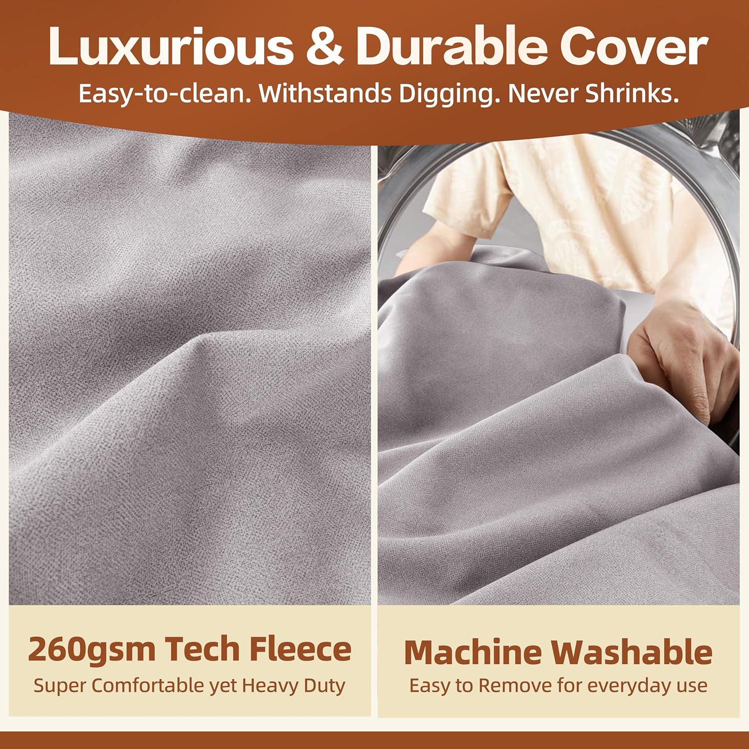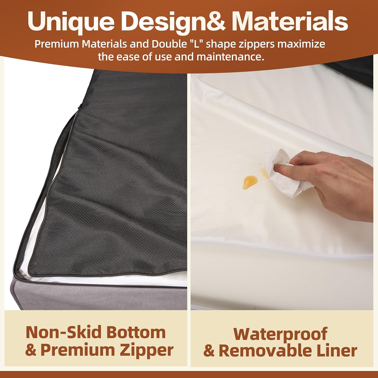 About this item 🦴 【Orthopedic Support for Senior Dogs】 Our orthopedic dog sofa is crafted to provide large or senior dogs with exceptional support for restful, rejuvenating sleep. The high-density egg-crate foam evenly distributes weight, offering optimal pressure relief and joint support—perfect for older dogs or those with joint issues. 🛏️ 【7-Inch Maximum Comfort】 Measuring 117x71x25 cm (46x28x10 in), this 7-inch thick bed features a built-in pillow and generously filled bolsters to support your dog’s head and neck. The lowered entrance is gentle on knees, making it especially accessible for large or senior dogs. 💧 【Waterproof & Easy Care】 A waterproof liner protects the foam mattress from spills and accidents. The zippered cover removes easily and is machine washable, making cleaning simple and stress-free. 🐾 【Dog-Approved Materials】 Wrapped in ultra-soft, velvety plush, this bed provides soothing comfort that large and senior dogs love. All materials are CertiPUR-US and OEKO-TEX Standard 100 certified for safety and comfort. 🛡️ 【Safe & Stable】 The non-skid bottom adds stability, preventing slips and ensuring your dog’s safety during rest and play. › See more product details