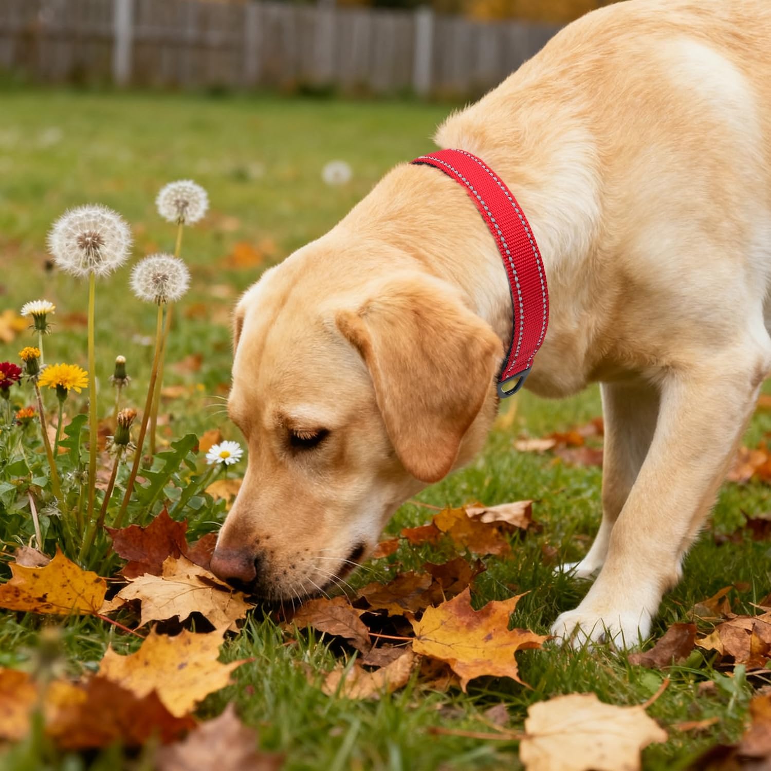 About this item Lockable Buckle: Side quick release buckle is made out of quality ABS plastic with safety lock to prevent the collar from accidentally opening Soft Neoprene Padded: The cushion from this exclusive feature gives maximum comfort to dogs during activities. No sharp edges or unfold sewing joint. Heavy duty stitching adds durability for long lasting use High Reflective Straps: Reflective stitching for extra visibility from distance at night, you can easily spot where your dog is during nighttime walks or activities Light Weight Nylon Meterial: Our dog collar made of nylon webbing,lightweight but durable, that can be hand washed. With sturdy metal D-ring can attach leashes and tags 5 Adjustable Sizes For All Breeds: X-Small 8-12" length, 5/8" wide; Small 10-16" length, 3/4" wide; Medium 14-20" length, 1" wide; Large 16-24" length, 1" wide; Extra large 18-28" length, 1 1/4" wide. Please measure around dog's neck where the collar would comfortably fit › See more product details
