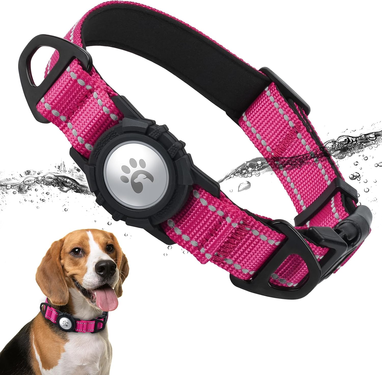 About this item Ideal Airtag Integration: Specially designed compartment securely holds AirTag (not included),keeping your pet's tracker discreetly embedded in collar padding.Ideal solution for real-time location tracking of adventurous pets Adjustable for All Breeds: X-Small is 5/8"x(8-10.5");Small is 3/4"x(10.5-14");Medium is 1.0"x(12.5-18");Large is 1.0"x(14.5-22.5");X-Large is 1 1/4"x(16.5-26").Ideal dog collars for small medium large boys & girls.Please take a measurement of your dog's neck circumference before order placed Safety Reflective Design: Reflective stitching on the TagME dog collar improves visibility at night.It can be conspicuous even in dim environments to ensure safety when walking dogs, reducing 70% night accident risks. Perfect for camping or city walks Upgrade Dual D-rings: Rust-proof reinforced metal D-rings withstand husky-level pulling. Main ring anchors leashes while secondary ring holds ID tags securely, with mirror-polished finish that survives rainy park adventures and sudden squirrel chases Durable Materials: Breathable neoprene padding molds to your dog's neck like a favorite hoodie, gives maximum comfort to dogs during activities. No sharp edges or unfold sewing joint adds durability for long lasting use › See more product details
