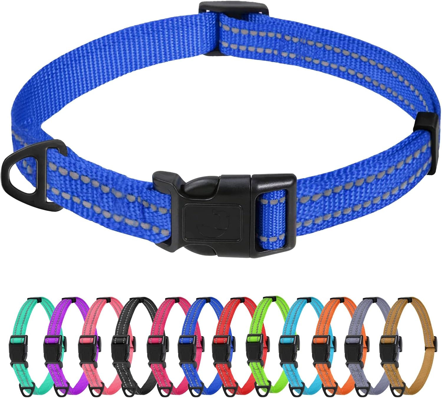 About this item Premium Material: Our reflective dog collar is made of high density nylon, comfortable, pliable, lightweight and elegant. Nylon webbing joints are all treated with sewing to protect your dogs and hands are not easy to scratch during use High Reflective: Each collar utilizes 2 special lines of reflective thread. Highly reflective dog collar keep high visibility at night for safety. And you can easily find your furry pet in the backyard at night Safety Buckle: The quick release buckle is made of premium sturdy plastic and can be released quickly with one hand. Lighter than metal buckles, more comfortable to wear. A separate loop on the collar makes it easy to add dog tag and lead onto the collar Adjustable Size: Adjustable from 8"-12", 5/8" Width. Suitable for puppy. Please measure the neck circumference of your dog before buying Classic Color: This classic solid colors will make your dog look more fashion and stylish while travelling and daily walking › See more product details