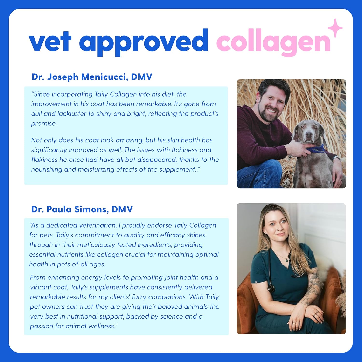 - Flavor: Skin and Coat Supplement for Dogs, Cats | Taily Liquid Collagen for Dogs | Itch Relief for Dogs with Allergies, with Grass Fed Collagen, Biotin, Vitamin C and Hyaluronic Acid | Made in USASee more