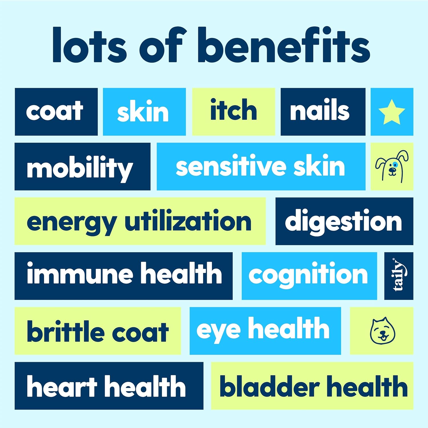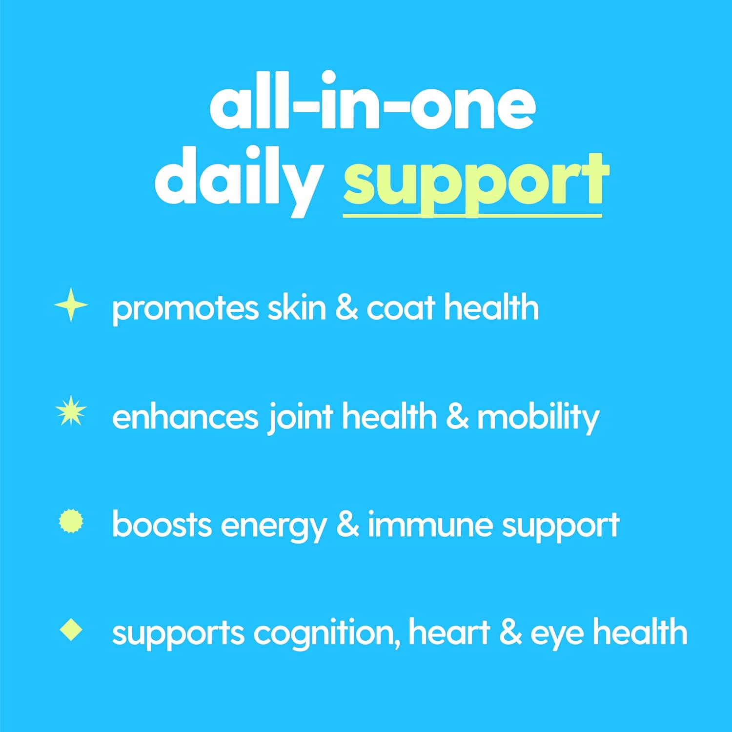 About this item πΎ 12-in-1 Formula: Packed with essential vitamins and nutrients to support your dogβs overall health and wellness. 𦴠Super Daily Dose of Vitality: Helps boost energy, skin & coat, immunity, and joint health with every dose. πΏ Clean, Human-Grade & Natural: Made with human-grade ingredients and no preservatives or fillersβonly the best for your furry friend! πΆ All-in-1 Convenience: Simplify your dogβs routine with this complete daily multivitamin. π Taily Trusted Quality: Crafted with care for happy, healthy pets every day! βΊ See more product details