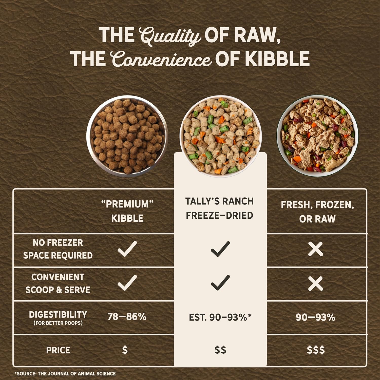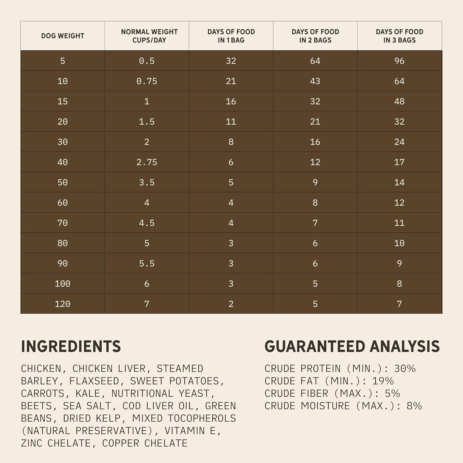 About this item Made with chicken and chicken liver, this high-protein formula provides essential nutrients to support muscle health, energy levels, and overall well-being Gently freeze-dried to deliver the same level of digestibility as fresh, frozen, and raw foods –– with the convenience of kibble Formulated to meet AAFCO standards, this complete and balanced includes wholesome ingredients like beets, carrots, and kale for optimal nutrition Made with zero fillers, meat meals, or artificial preservatives, this recipe provides only real, wholesome ingredients with every bite We combine the ease of kibble with the whole-food nutrition, taste, and health benefits of fresh, human-grade, ingredients Proudly made in the USA in small batches using premium, responsibly sourced ingredients, ensuring quality, safety, and great taste in every bag Suitable for dogs of all breeds and sizes › See more product details