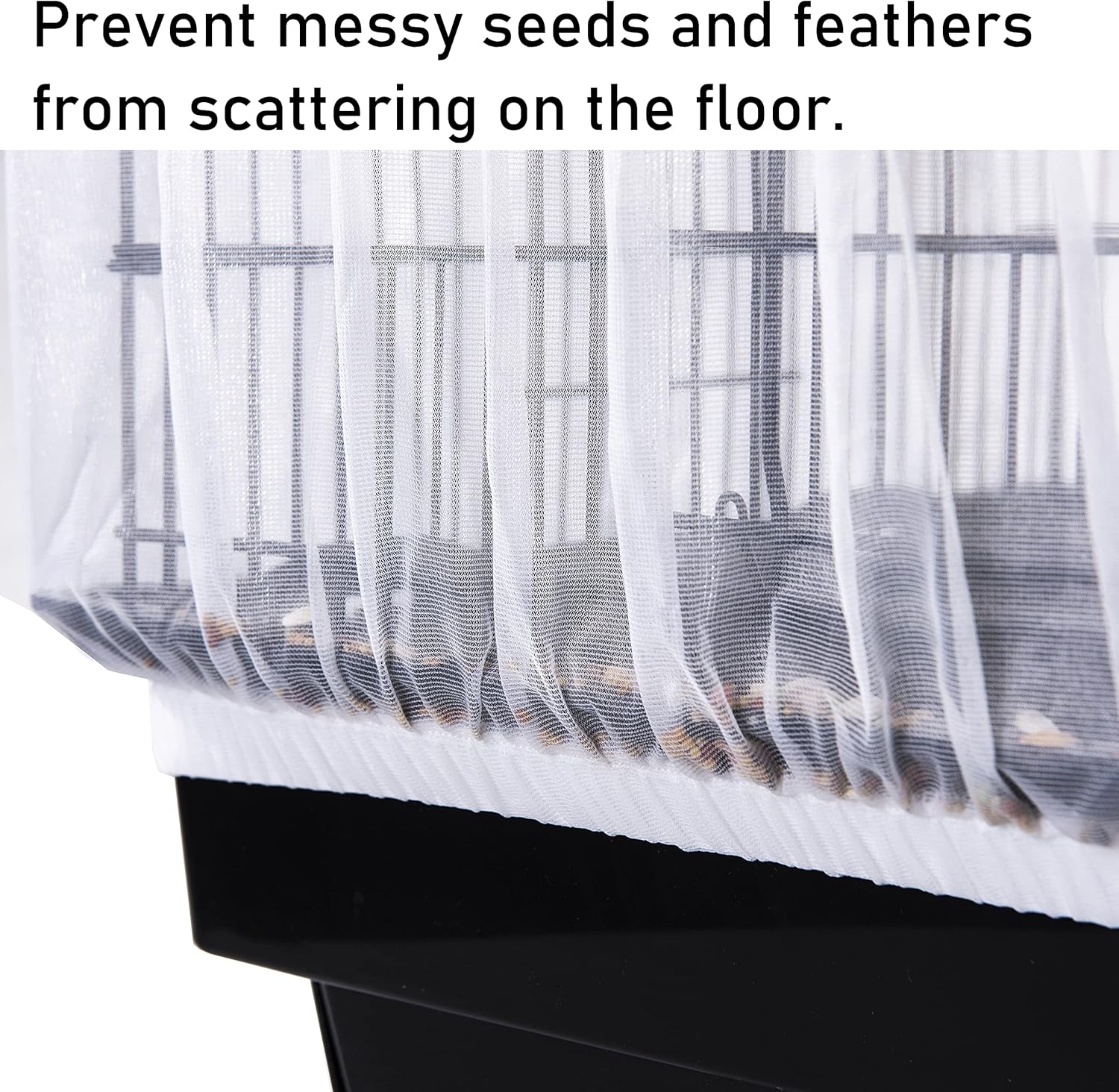 Universal Bird Cage Seed Catcher : Our birdcage seed guards and catchers fit securely around your birdcage to prevent messy seeds and floating feathers from scattering on the floor Snug Elastic Fit Design : This bird cage net is ideal for parrots and other indoor birds. The bird cage skirt is adjustable to 55 inch to 100 inch circumference with 16 inch height, it can fit a wide range of square, round, and oval shaped cages perfectly Pet Friendly Cage Accessory : The fine mesh coverings allow air and light to pass through comfortably to keep pets cool and relaxed. Pet owners can see their pets clearly Super Simple Installation : No tools or complicated processes required. The stretchy fit and snug design mean you can simply slide it over the cage without having to tie anything off or cut it to fit Machine Washable Netting : The bird cage cover is made with a heavy duty nylon which is strong and lightweight, to be completely machine washable › See more product details