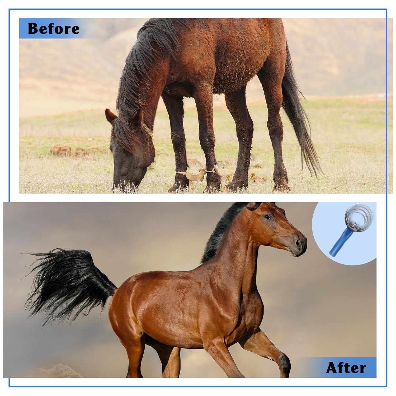 Features: Humanized design handle: Ergonomically designed, it fits very well in the palm of your hand, easy to hold, and combs smoothly without tiring your hands. Easy and labor saving: The double sided curry comb is ideal for long haired breeds and can easily clean large amounts of hair without harming the animal's skin. Specifications: Material: stainless steel and PP material Color: blue handle Size: about 9.1 inches long, 3.94 inches in diameter Package includes: 8 x Horse brushes for shedding Notes: Manual measurement, please allow slight errors on size. The color may exist a slight difference due to different screen displays.