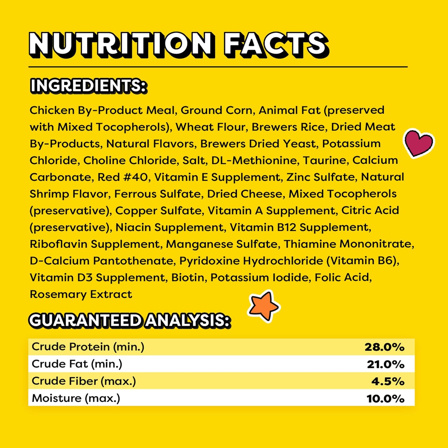 Cats love the delicious, crunchy taste of Temptations, so give your cat purr-worthy Temptations Classic Crunchy and Soft Cat Treats Shrimpy Shrimp Flavor, and they’ll come running the moment you open the pack. Each of these shrimp-flavored cat treats has less than 2 calories and provides an irresistible combination of both crunchy and soft textures. They also come in a stay-fresh tub, so your feline friend can enjoy their favorite cat snack when you open it, but not when they shouldn’t! These Temptations Classic Cat Treats are a perfect addition to your cat’s regular feeding routine: Use them as a treat, a meal, or a cat food topper. Temptations Classic Cat Treats are the purr-fect way to show your feline friend how much you care.