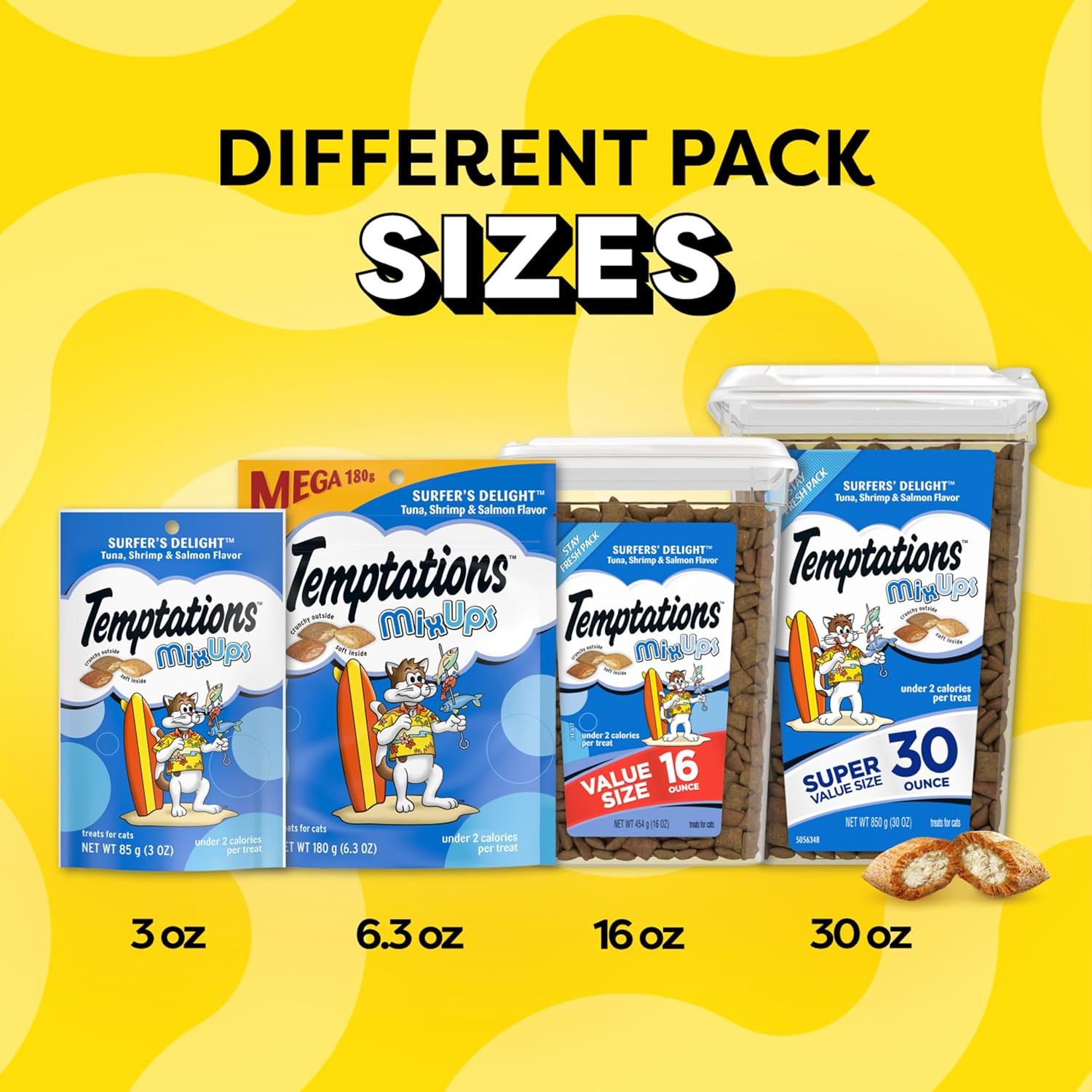 - Included Components: TEMPTATIONS MixUps Treats for Cats SURFER'S DELIGHT Flavor, 16 oz. Tub
