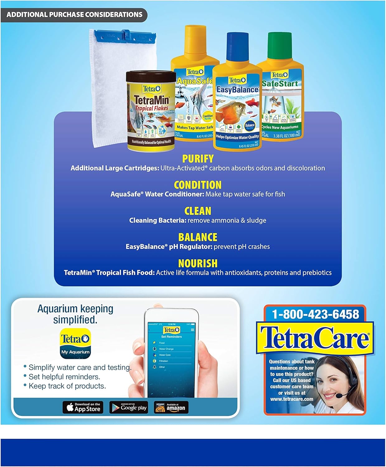 The Tetra® Whisper® IQ Power Filter with Stay Clean™ technology keeps aquarium water clean and clear. This quiet filter contains a soft barrier between the motor and the filter that serves as a sound shield to minimize noise. The bio-scrubber cultivates aerobic bacteria to remove toxic ammonia and nitrite, and the smart path spillway oxygenates the water and agitates the surface. With a self-priming, submerged motor and adjustable intake to fit your aquarium’s needs, the Tetra Whisper IQ Power Filter is perfect for use with both freshwater and marine fish. Works with easy-to-change Tetra Whisper Bio-Bag® Filter Cartridges with Stay Clean technology – helps reduce buildup on aquarium glass, bind small dirt particles to make them easier to filter and stabilize pH levels to prevent crashes, meaning easier aquarium maintenance for you. Tetra Whisper IQ Power Filters are available in a range of sizes to fit your aquarium. This Tetra Whisper IQ 30 Power Filter treats aquariums up to 30 gallons (175 GPH). Convenient color coding makes it simple to choose the correct size replacement cartridge – use with size large Tetra Whisper Bio-Bag Filter Cartridges (blue packaging). Since 1951, Tetra has developed the world’s most comprehensive body of fish food knowledge, and fishkeeping enthusiasts have looked to the brand for products and solutions that add ease and beauty to their home. Whether you're an experienced hobbyist or just starting out, Tetra has everything you need – from a large variety of quality fish food and innovative equipment to test kits and decor.