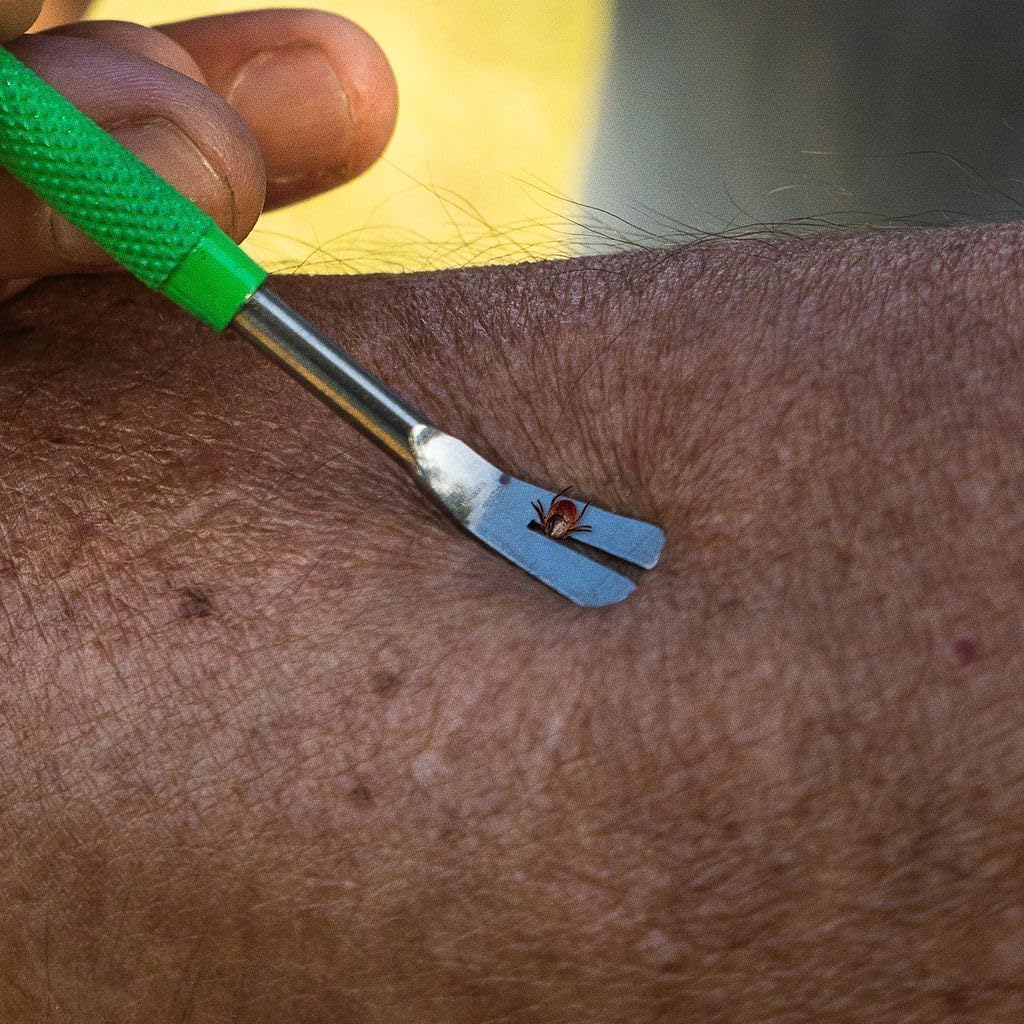 About this item ✔️ BEST TICK REMOVERS FOR PEOPLE OR PETS - Kit includes stainless steel tick remover for safely removing larger embedded ticks, and a specially shaped super-fine-tip tweezer for removing nymphs and small deer ticks, in a leatherette pouch ✔️ UNIVERSITY TESTED - The tools in this tick removal kit have been field-tested and designed for easily and safely removing embedded adult and nymph ticks from humans, dogs, cats, or other pets ✔️ FREE TICK IDENTIFICATION CARD to easily identify the most common species of ticks in the United States ✔️ SUPPORT LYME RESEARCH - A portion of the proceeds of this tick remover kit helps fund university research on ticks and Lyme ✔️ PERFECT FOR OUTDOORS ENTHUSIASTS - Keep your tick remover kit in your first aid kit, glove compartment, or backpack to easily remove ticks wherever you go › See more product details