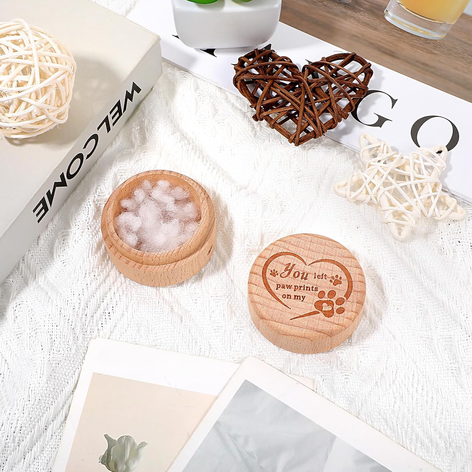 • 【Elegant Memorial Design】This pet fur keepsake box features a heartfelt engraving of the phrase "You Left Paw Prints On My Heart" accompanied by a delicate paw print motif. This thoughtful design transforms the wooden keepsake box into a touching tribute, symbolizing the unique and enduring bond between you and your pet. The simple yet elegant appearance ensures it serves as a dignified memorial gift, offering a tangible focus for remembrance and providing comfort during a time of loss.