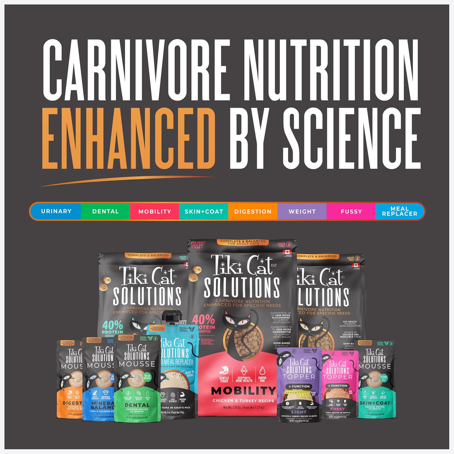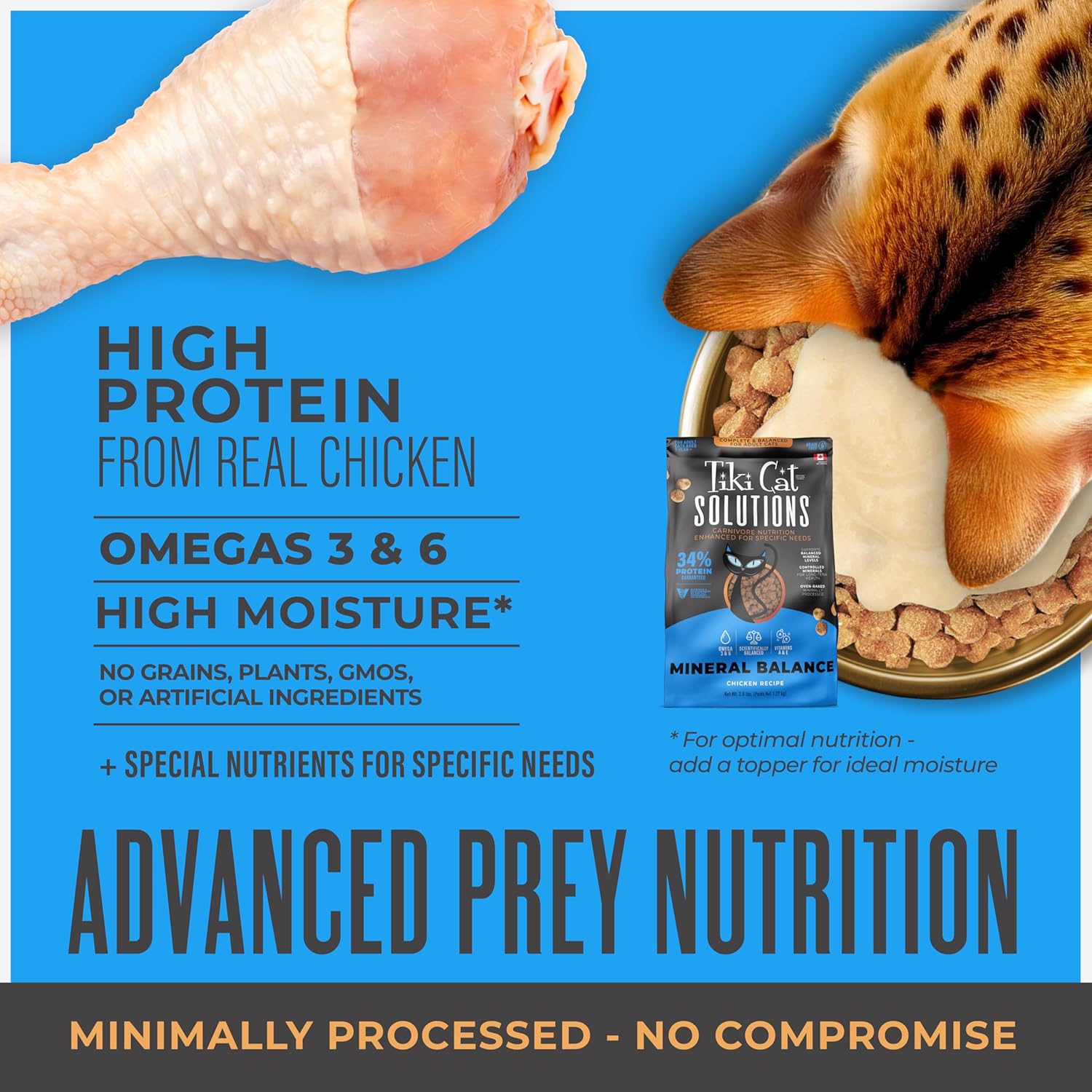 Supports Balanced Mineral Levels. All cats are born carnivores, but some have special nutritional needs. Tiki Cat® Solutions(TM) Mineral Balance Baked Kibble is oven-baked and formulated to promote a healthy mineral balance. The high-protein recipe helps cats maintain an ideal body condition, plus Omega 3 & 6 fatty acid sources to support beautiful skin and coat. Formulated by Veterinarians & Animal Nutritionists.