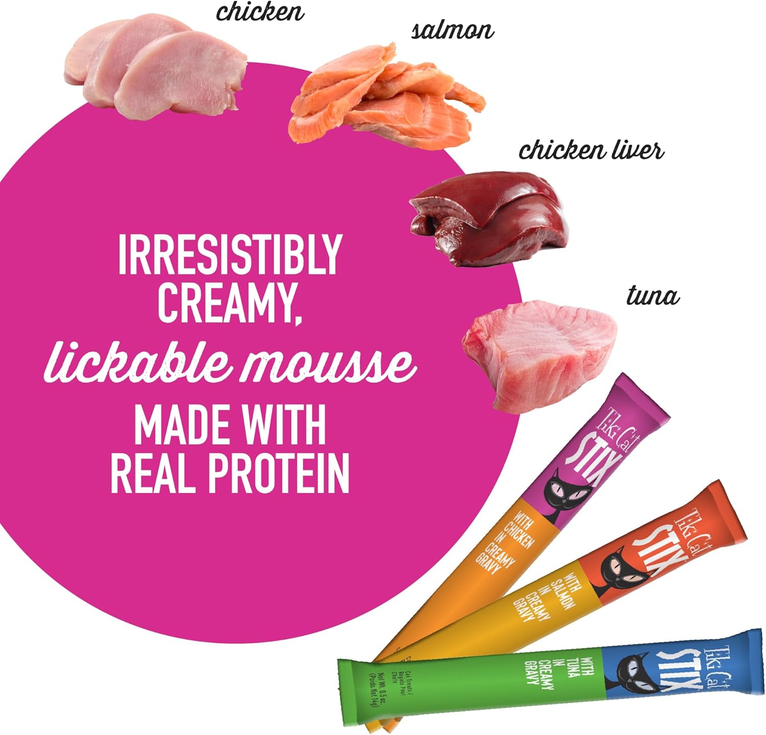 Flavor-packed treats in a silky smooth mousse. Tempt your cat with convenient, individual lickable servings or try as a topper on dry food for a boost of flavor and moisture.