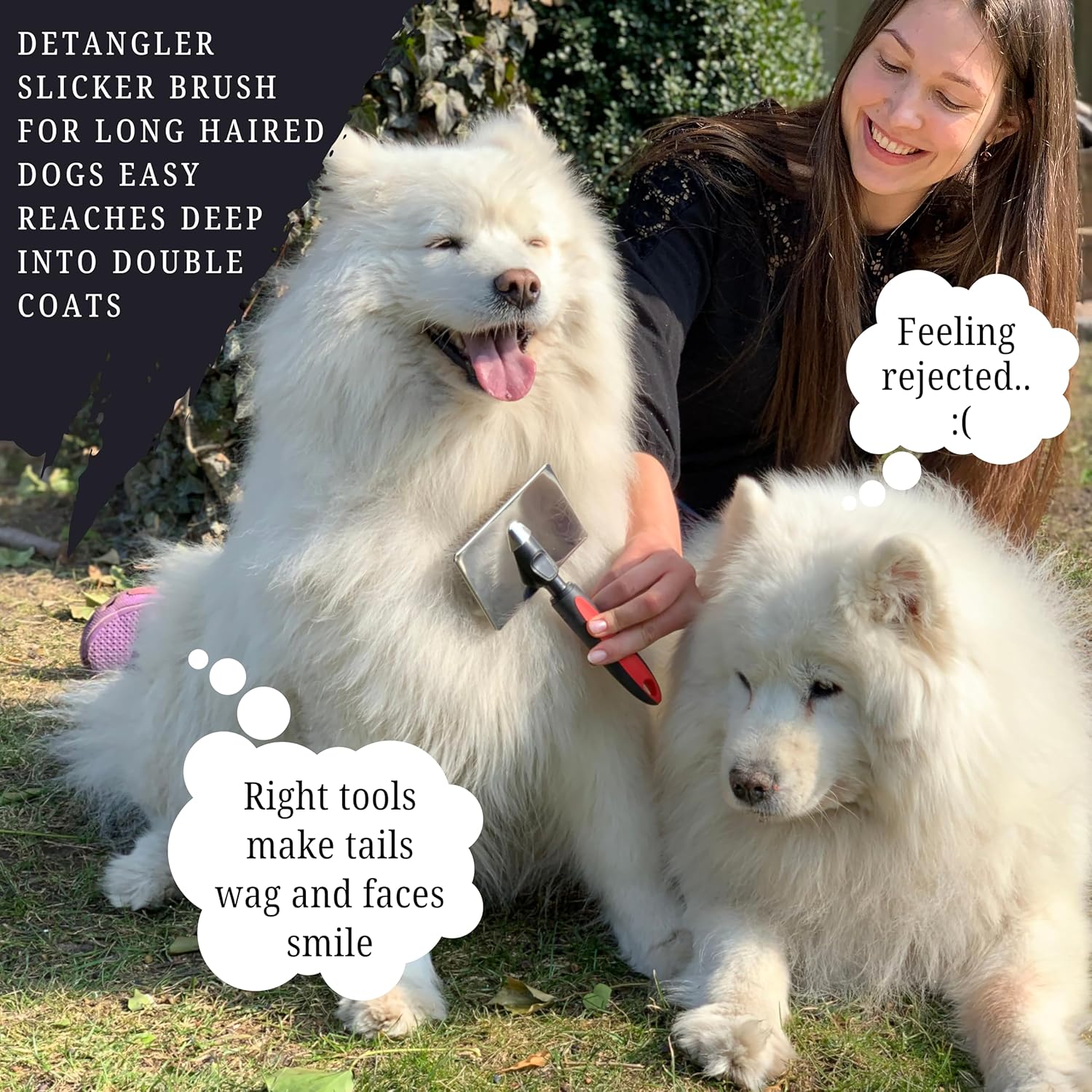 - Special Feature: Custom made - thicker, longer pins resist bending and tackle even the toughest mats and tangles, Each pin is coated to protect skin from scratches, making grooming safe and gentle, Extra-long pins penetrate deep into dense coats, reaching the underlayer with ease, Non-slip ergonomic handle ensures groomer comfort and control during long sessions, Premium materials and expert craftsmanship provide a detangling brush built for effective groomingSee more