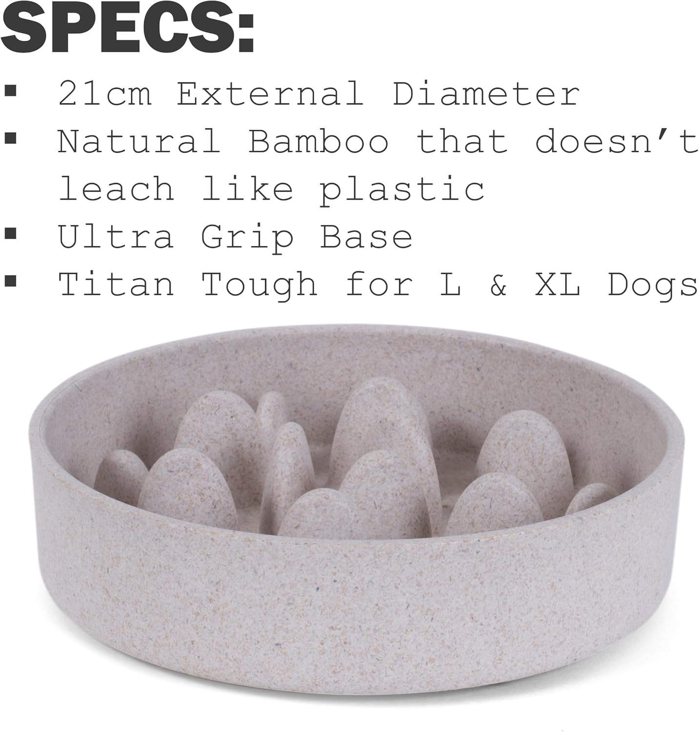 About this item Promotes Healthy Eating: Perfect for medium, large and extra large dogs. This slow feeder design, also known as a slow feeder dog bowl, is crucial for your dog's well-being. It transforms mealtime into a stimulating puzzle, encouraging your dog to eat at a slower, more natural pace. This helps prevent gulping, which can lead to digestive issues like bloat, vomiting, and poor nutrient absorption. Choosing a healthy dog bowl like this is a proactive step towards better digestion. A Premium Dog Bowl: Beyond just slowing down eating, a bamboo slow feeder often qualifies as a premium dog bowl due to its thoughtful design and eco-friendly material. The smooth, non-porous surface is easy to clean and resists nasties, unlike some other materials. Eco-Conscious Choice: If you're looking for a non-plastic dog bowl, bamboo is an excellent choice. It's a rapidly renewable resource, making it a more sustainable option than plastic. While it's not a stainless steel dog bowl alternative in terms of material, it offers similar durability and hygiene benefits without the environmental impact of metal mining and processing. Versatile Design: While primarily a slow feeder dog bowl, some designs can also function effectively as a dog water bowl. The non-slip base often found on these bowls prevents sliding and spills, whether used for food or water. Stylish and Functional: A bamboo slow feeder dog bowl can be both functional and aesthetically pleasing. The natural look of bamboo complements any home décor, and the sturdy construction ensures long-lasting use. It's a smart investment for pet owners seeking a high-quality, eco-friendly, and health-conscious feeding solution. › See more product details