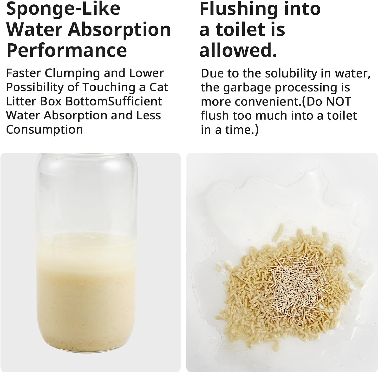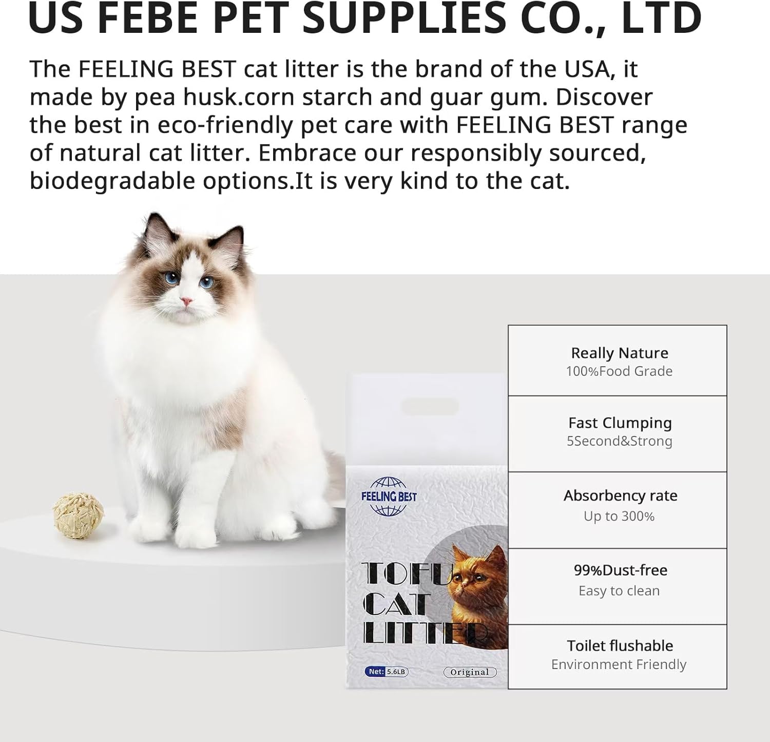 The FEELING BEST cat litter is the brand of the USA, it made by pea husk, Discover the best in eco-friendly pet care with Go Natural's range of natural cat litter. Embrace our responsibly sourced, biodegradable options is very kind to the cat. ◎ Realy Natural ◎ Environmentally Friendly ◎ Fast Clumping ◎ 99% dust-free ◎ Absorbency rate of up to 300% ◎ Easy to clean ◎ Toilet Flushable FEBE Go Natural is a new range of litters that, unlike mineral cat litter, are based on sustainable sources. Plant-based litters are a safer and more planet-friendly litter choice! Finally, your cat can ‘go’ as they would in nature! Our litter pellets have a unique diameter of 1.5 mm, which makes for a much larger overall absorptive surface than most litters. Thanks to this feature, the litter can absorb up to 3 times its own weight! This pea husk litter is a great choice for cats and people with allergies. Even as your cat digs around in the litter box, the smallest litter particles aren’t kicked up, but will gradually travel down. This means there’s no hazardous airborne dust, and you can breathe easy while pouring and scooping. The natural clumping agents in this litter form tight clumps without sticking to the litter box or the scoop. This makes for easy scooping and cleaning. By choosing this litter, you choose to recycle and lend a helping hand to nature. FEBE Go Natural Pea Husk Clumping Cat Litter is very easy to handle thanks to its low weight – one liter of litter only weighs 0.8 pounds!