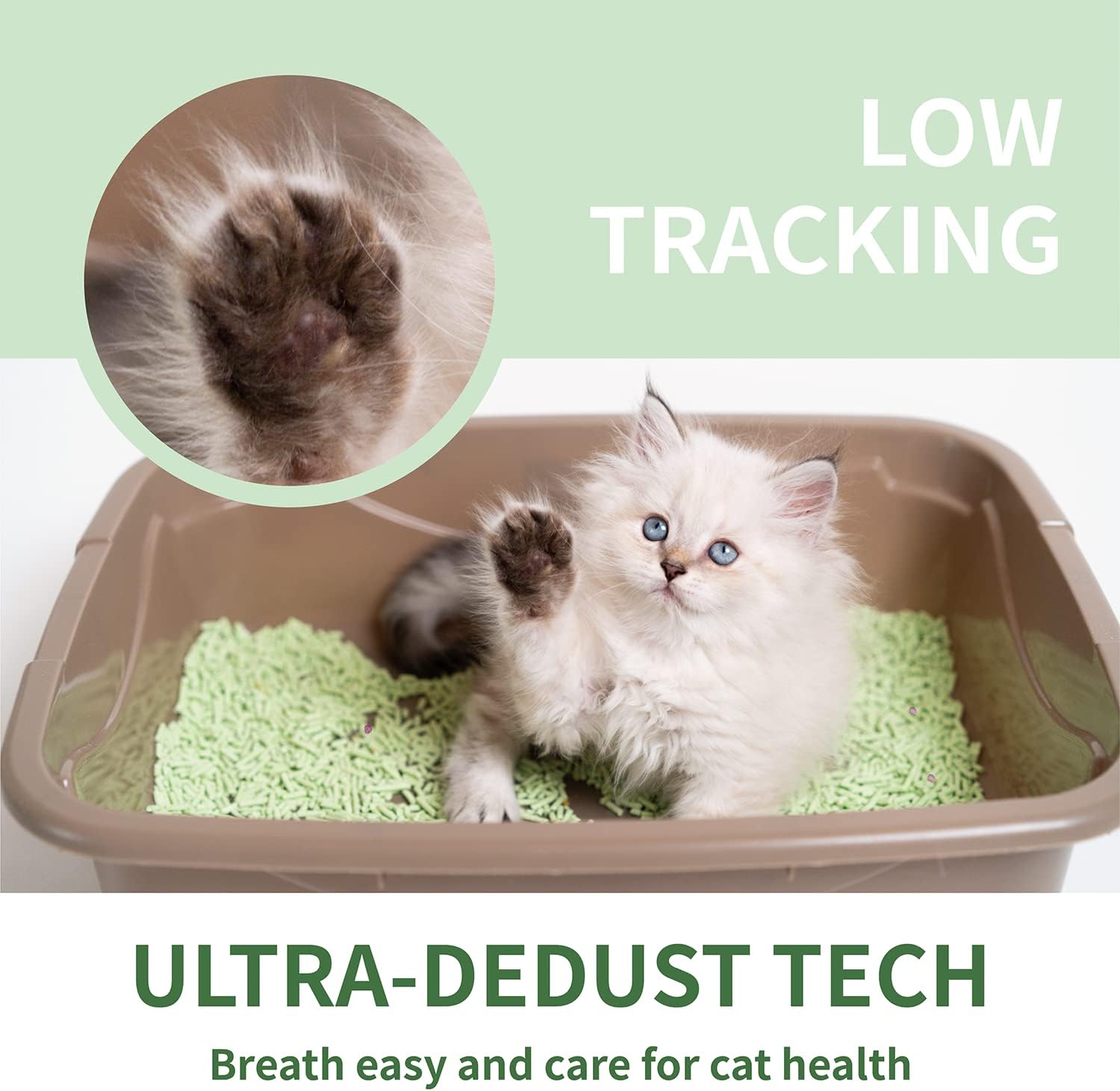 About this item Pellets of tofu cat litter can clum together quickly and don't stick to the cat's paws. Forming solid clumps that are easy to remove without crumbling Low-tracking cat litter that has been filtered to ensure that there is no longer a dust cloud when it is added to the litter box, safeguarding your cats Green tea flavoring in tofu cat litter helps to control odors, so you won't smell bad when you come inside after a long day or when you wake up You can find it very convenient to flush natural tofu cat litter down the toilet rather tossing it in the trash For one ot more cats, the cat litter's superior absorption capabilities make it a great option. There is 5.5lb in every pack › See more product details