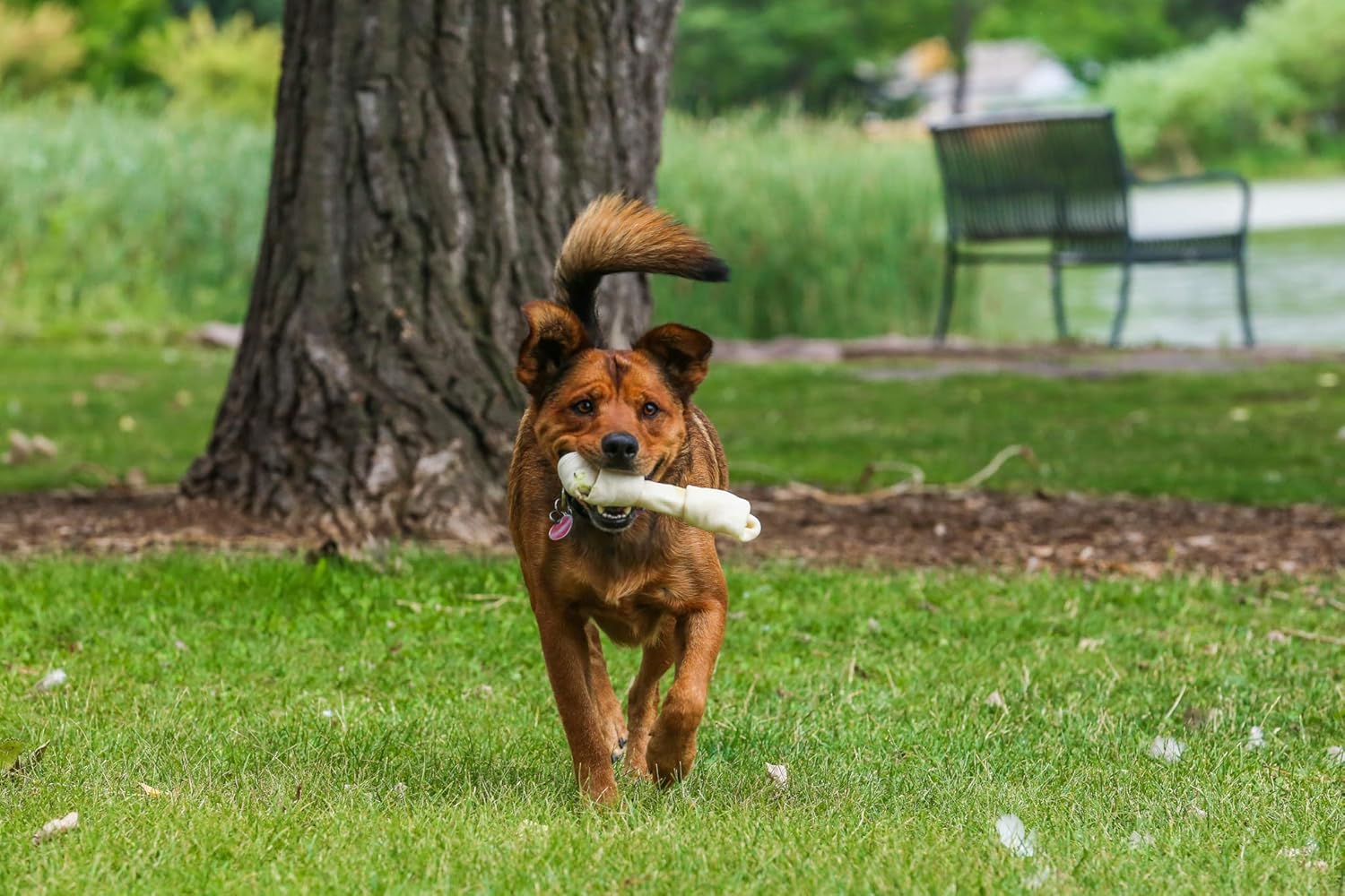 About this item Natural & Safe: Our rawhide bones are made from American-raised beef hide without any artificial additives or preservatives, ensuring a safe chewing experience for your beloved pet. Dental Hygiene: These bones are specifically designed to help maintain healthy teeth and gums, supporting your dog's overall dental hygiene. Protein-Rich Treat: Each Rawhide Bone is packed with protein and low in fat, making it a nutritious and satisfying treat for your furry friend. Stress Relief: Chewing on these bones can help alleviate stress and anxiety in dogs, providing a calming and soothing effect. Great for small, medium and large breeds. › See more product details